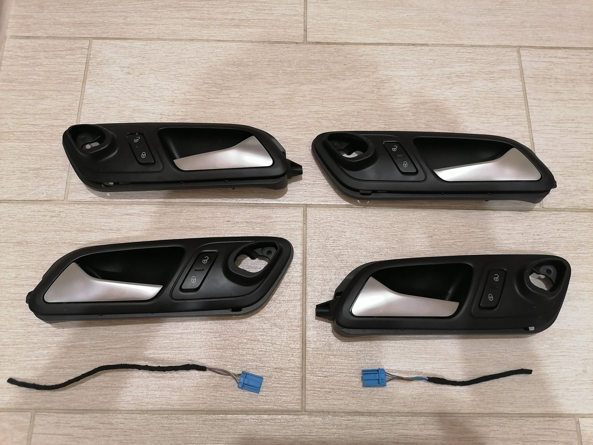 К слову можно было и не покупать, а купить только светопроводящии планки с диодами и выпилить отверстия в старых ручках. Разметка там под это дело вроде есть, но с подобным делом уже сталкивался на Аудюхи и получилось честно говоря не очень. Поэтому решил купить уже готовые ручки с родными, ровными и аккуратными отверстиями.