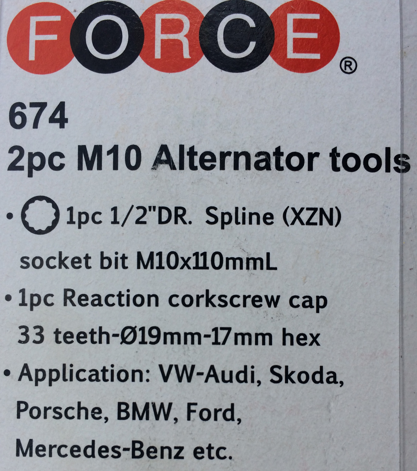 Ключ генератора 1/2 SPLINE М10х110мм FORCE 674