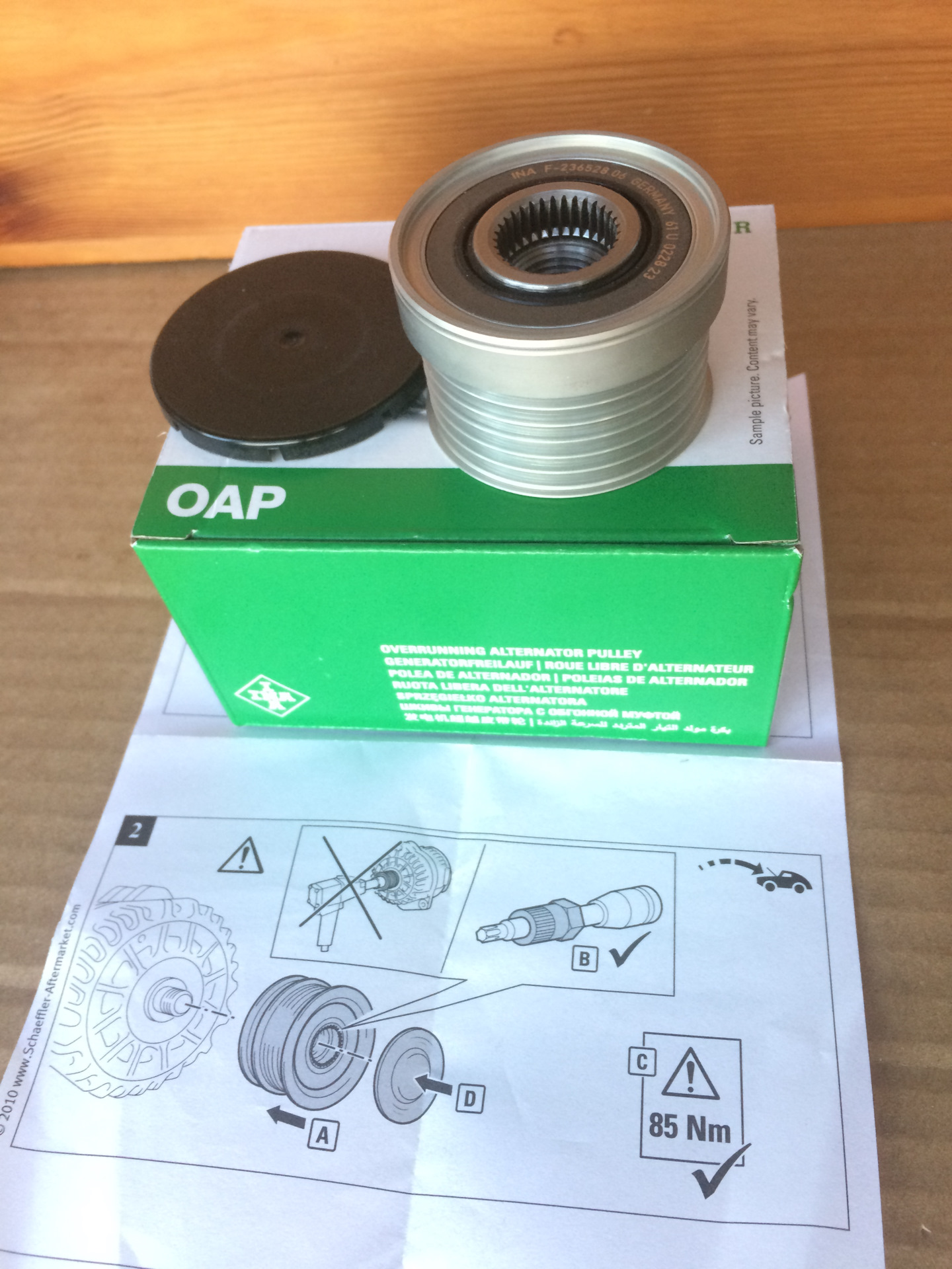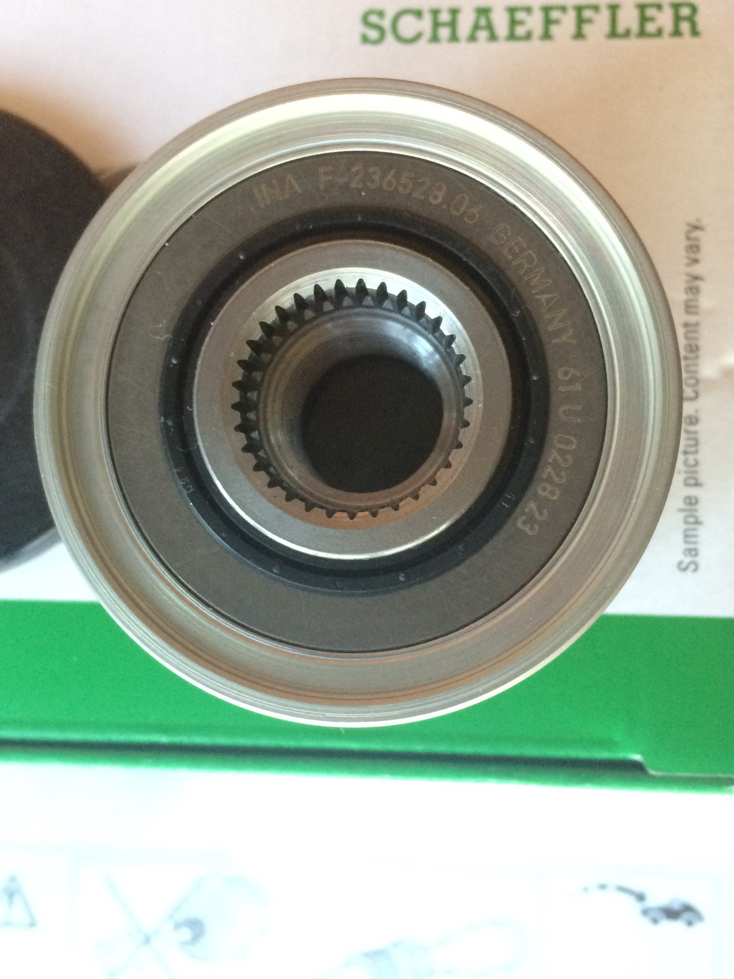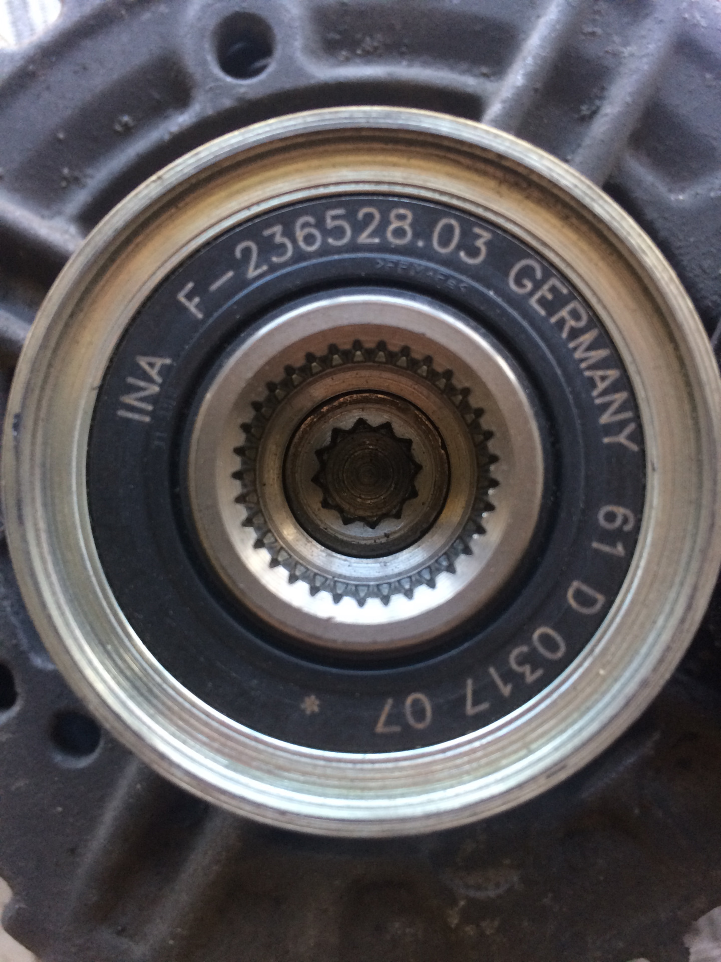 Обгонная муфта была неисправна. Она заклинила и работала как обычный шкив. А должна отрабатывать и в обратную сторону. Это легко проверить рукой на установленном или снятом генераторе. Крутануть по часовой стрелке, а потом сразу против часовой — муфта должна отработать, т.е. вращение на удерживаемый рукой внешний диаметр муфты передаваться не должно. Это нужно для того чтобы избежать рывков ремня при сбросе газа, когда скорость вращения вала генератора выше чем скорость движения обводящего муфту (шкив) ремня. Аналогия из жизни — едете на велосипеде, крутите педали. А если надо проехать спокойно, не ускоряясь — просто педали оставляем в удобном положении, а каретка велосипеда продолжает крутиться.