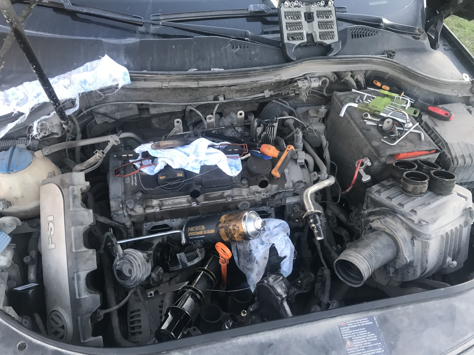 Всем привет давненько ничего не писал, вообще загорелась ошибка ecp, круиз, и курсовая устойчивость, через блютуз адаптер выяснил что ошибка по дросселю, решил почистить а как залез ужаснулся решил привести в более менее порядок впуск все на фото ) драйва)
