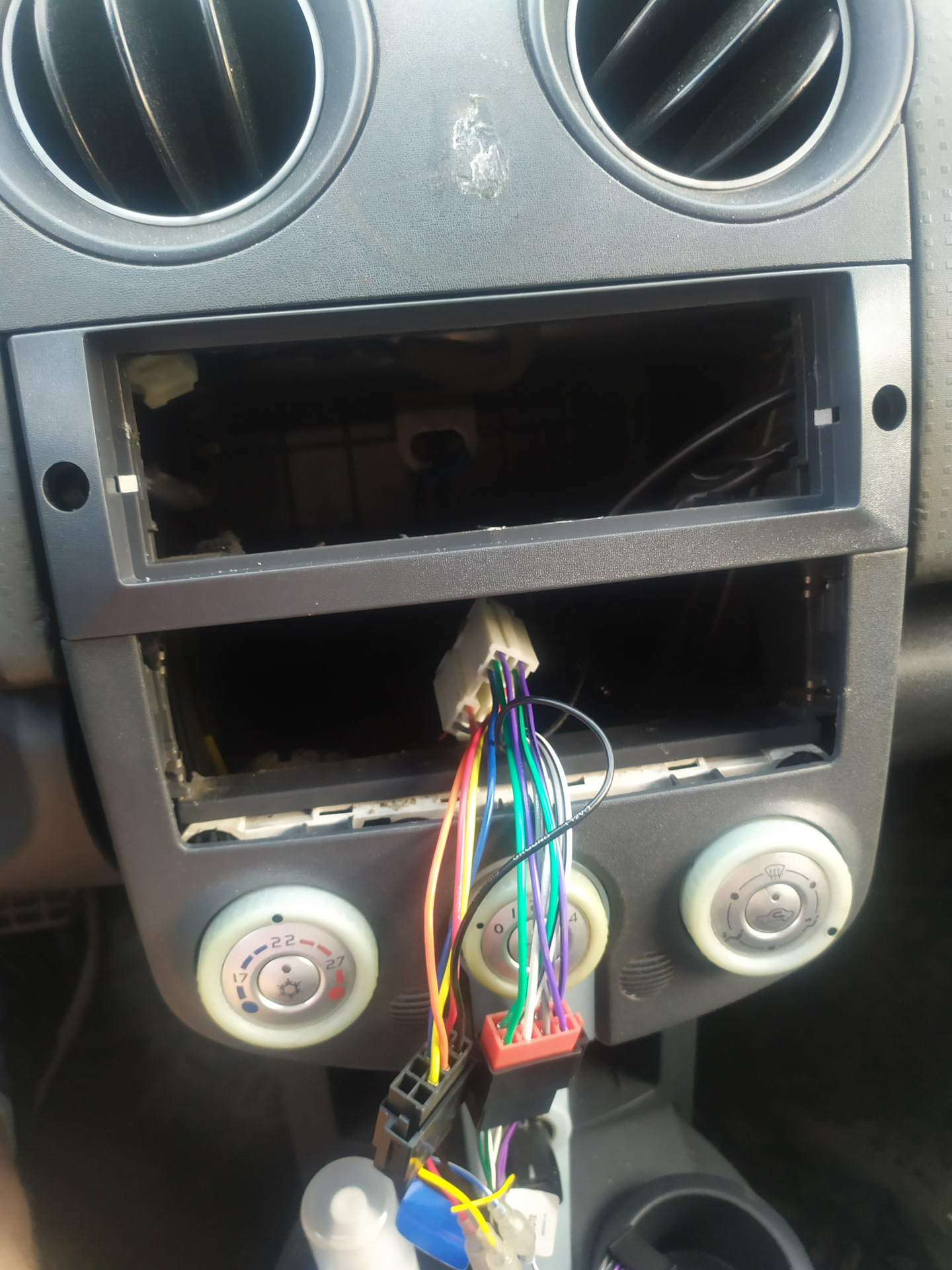 Перед тем как установить магнитолу, следует установить на место мини бардачок, если вы его снимали, конечно. В другом случае, просто подключаем радио провод, фишку с переходником к магнитоле и устанавливаем систему рамка-магнитола на место