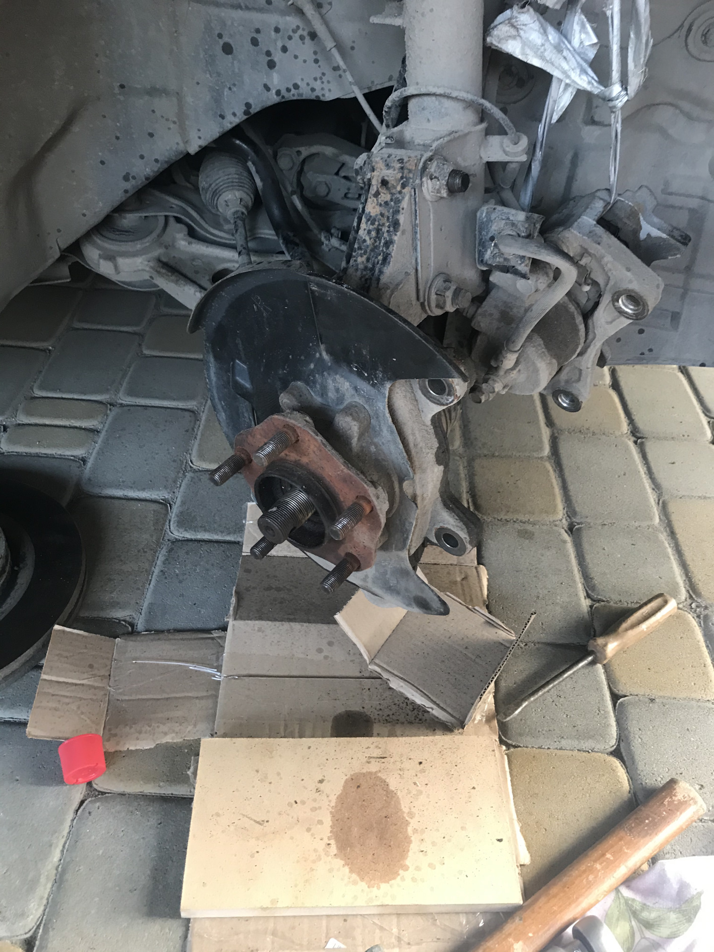 Процесс замены ступицы есть на фото. Однако я упорол косяка при замене: обрезал часть металлического пыльника, чтобы вставить ступицу не повредив датчик abs (закипел и не выходил), а при обрезке пыльник просто отвалился от ступицы и получается, что можно было не резать. Ну и само собой уже ничего восстановить не получилось. Так что я сначала вдавил пыльник, ну а потом ступицу. Возможно что придёт ей капец после первого дождя, из за этой дыры, ну или не придёт. Будем ездить и проверять. Сервисмены сказали не париться. Но после замены настроение очень плохое.