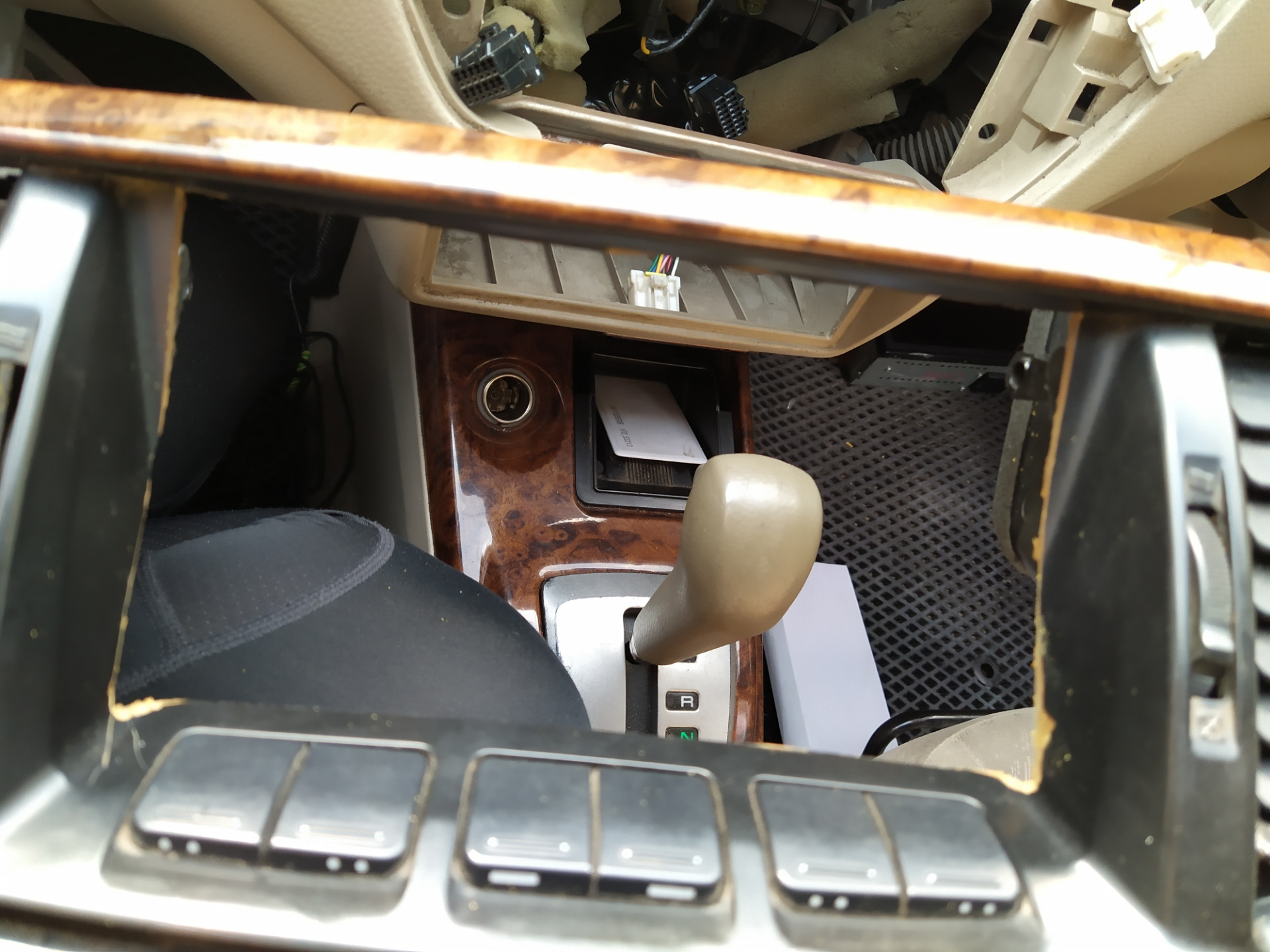 Первым делом аккуратно снимаем пластик, сперва тот что под климат, потом саблю, сабля держится дополнительно на двух болтах, не переусердствуйте в стремлении быстро все разобрать, сорвать её первым делом. Далее снимает штатную мультимедийную систему, вынимаем старую магнитолу из нижнего кармана, отсоединив фишки.