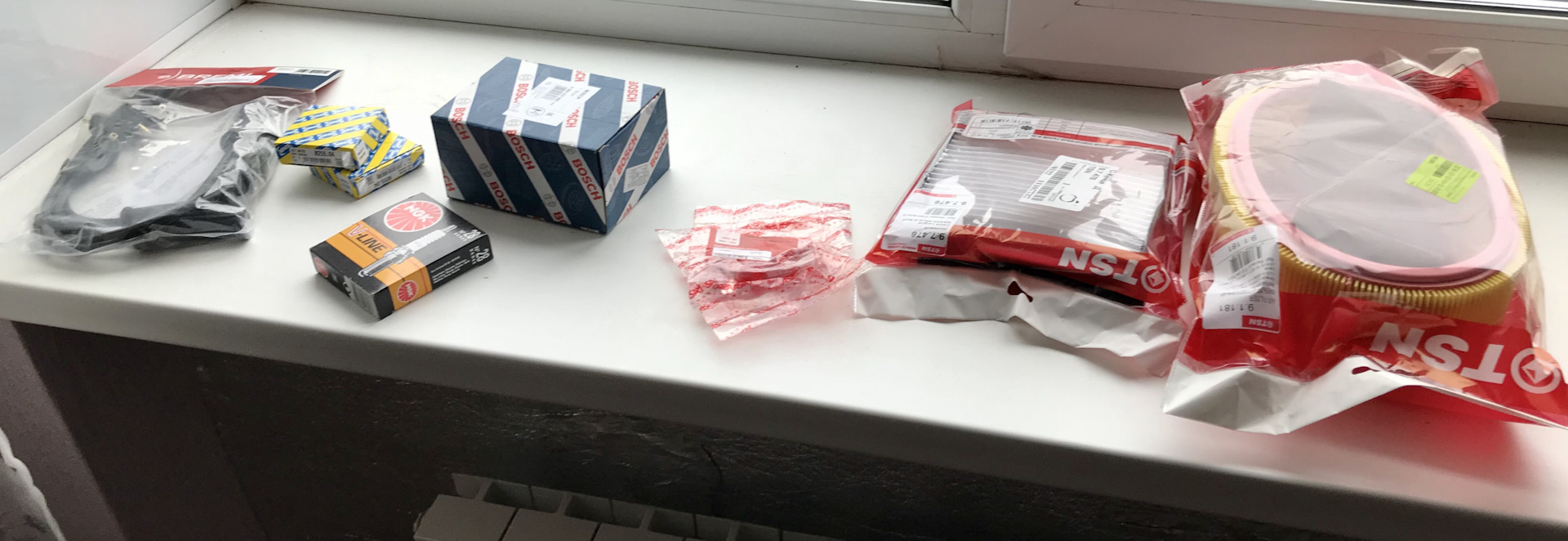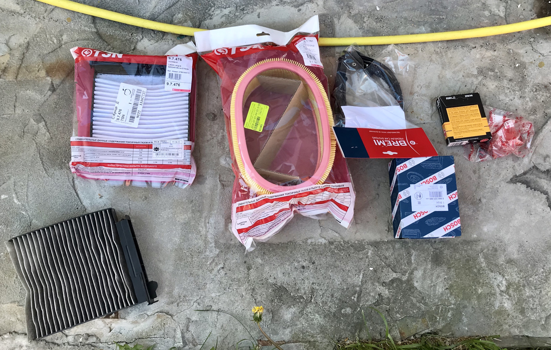2. Первым делом поменял масляный фильтр и моторное масло, до этого лил 5w-40 Elf Evolution 900 nf, с этого года решил залить 5w-40 Elf Evolution 900 sxr (то что рекомендуют). Поменял салонный/воздушный фильтр и свечи на BKR6E. Так же зимой в темноте показалось что начала трескаться катушка фирмы «Стартвольт», когда уже детали пришли при снятии старой катушки обнаружил что все оказалось нормально и катушка целая, ну не зря же заказывал по этому поставил новую BOSCH с проводами BREMI (так как многие нахваливали эту комбинацию), подложил болты и заколхозил четвёртое крепление катушки, чтобы при движении сильно не прыгала (на фото не видно). Ещё поменял втулки кулисы, я почему то думал что бывшие хозяева их не меняли с завода, но при снятии как оказалось они целые и вполне «свежие». Ну опять же не зря заказывал и разбирал-поставил новые фирмы ASAN-SA.
