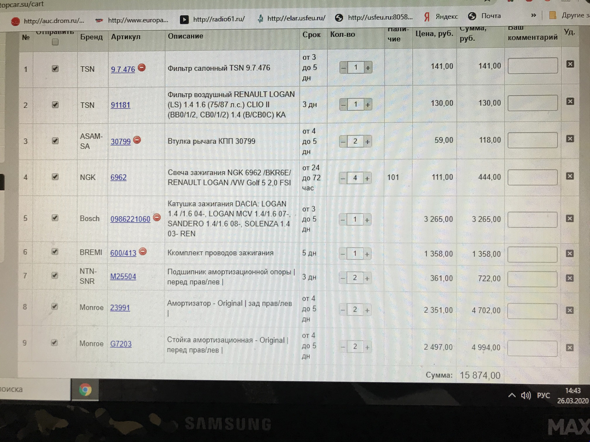 1. Для начала все заказал, все артикулы и цены на фото.