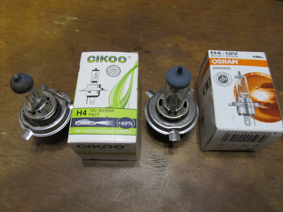 Покупаю и устанавливаю лампы AWM H4 12V 60/55W CHINA (на фото третья слева, коробочка не сохранилась).
