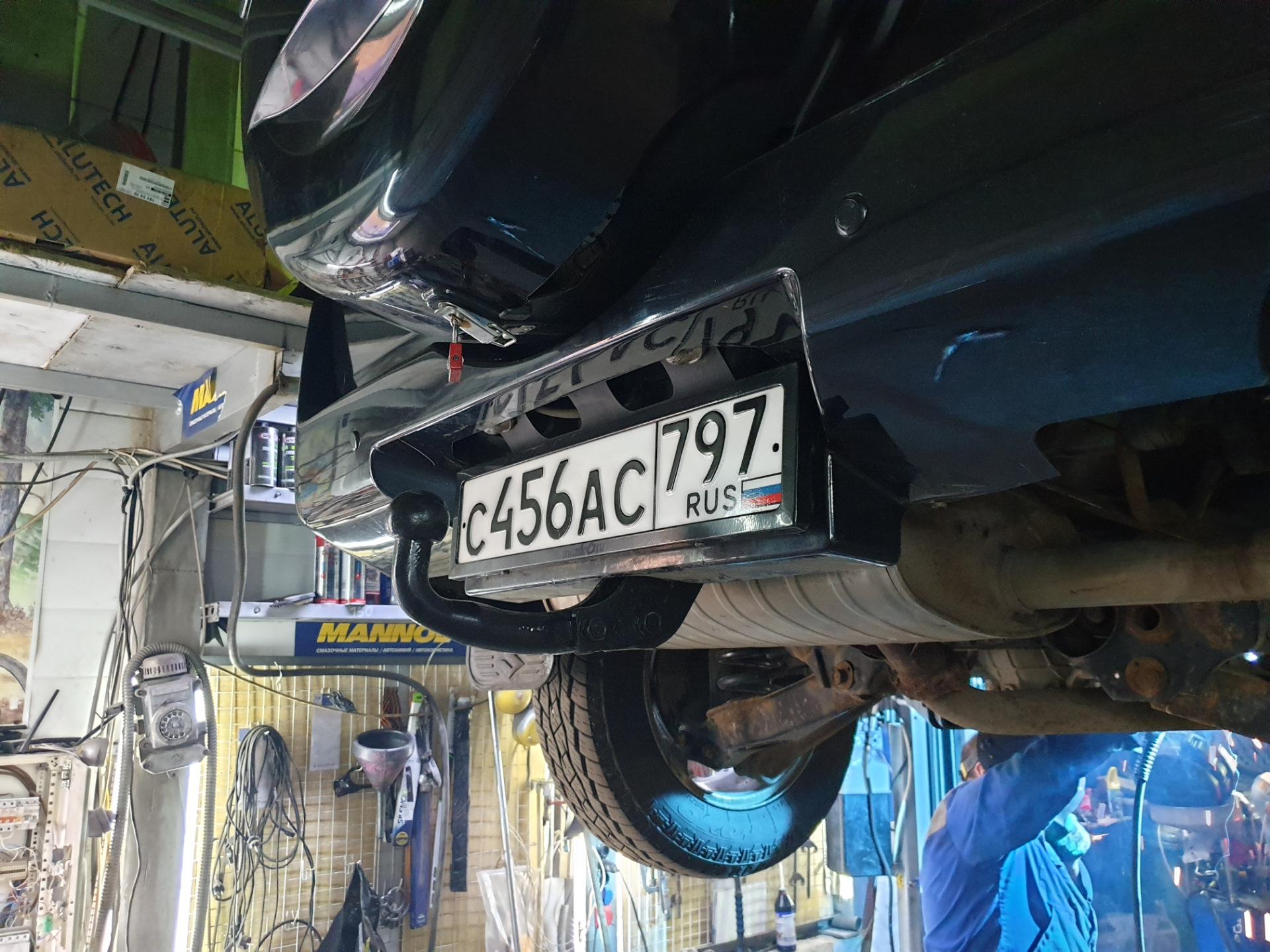 Зная проблему разогнутых проушин, обзавёлся динамкой, и цельноварным фаркопом на 8ми точках крепления. Болты взяли от Тойотовской подвески (Тойотка всегда выручает =) )