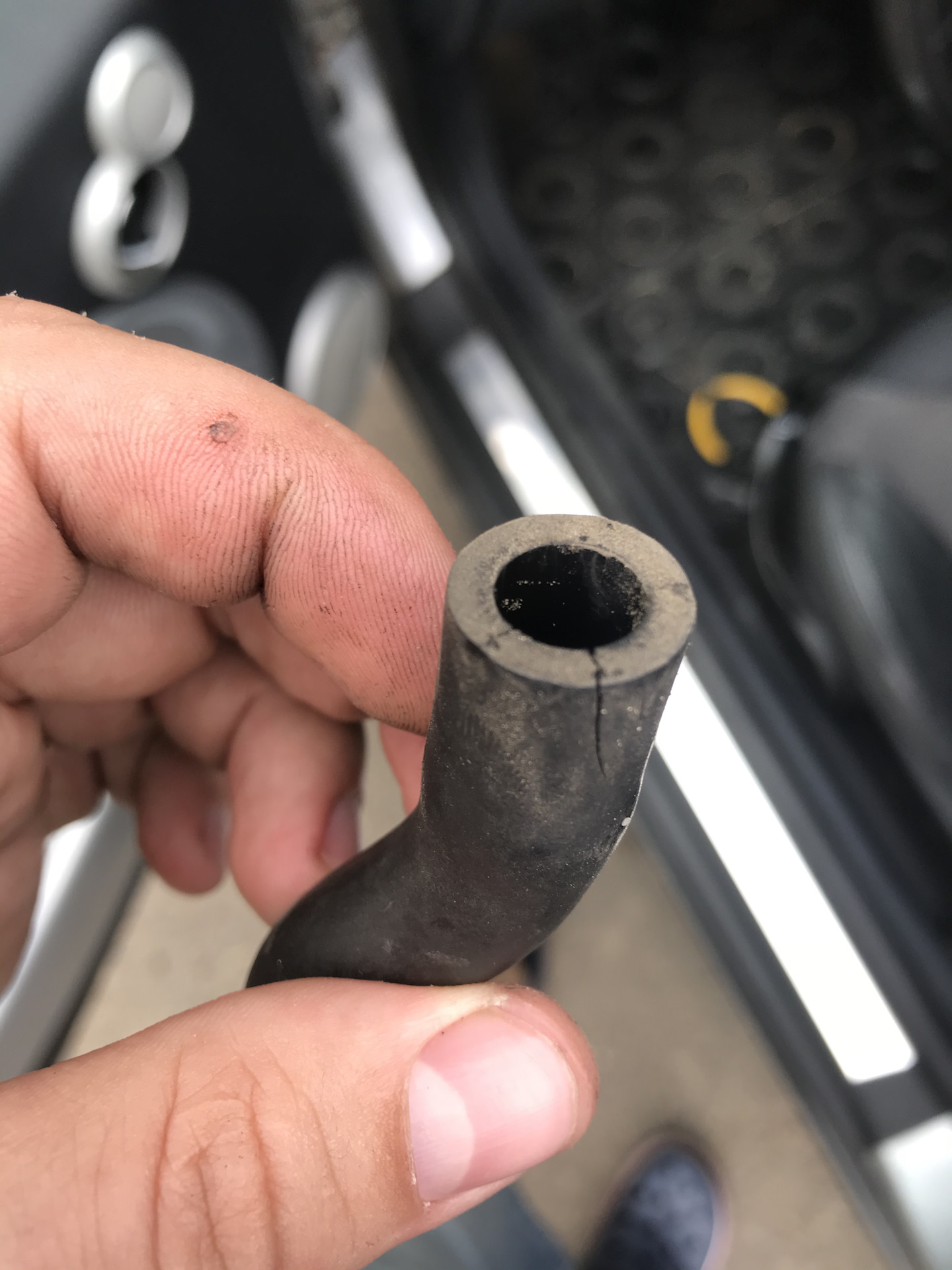 Да, верхняя трубка продувки картечных! Она во впускной коллектор идёт и через неё может попадать не учтённый воздух мимо ДМРВ и соответственно ошибка по расчёту стехиометри смеси! ;)