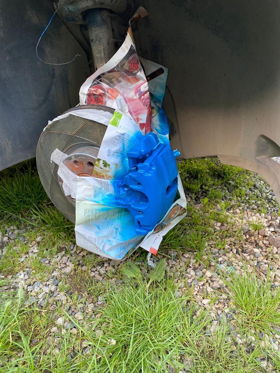 — Снимаем суппорта с направляющих и заклеиваем рабочие части малярным скотчем.