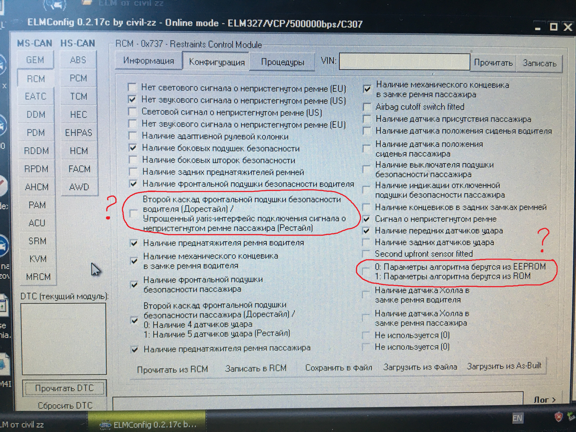 :))) в скрине красным отметил — учитывая что у меня теперь RCM и приборка и сидения от реста, а GEM и проводка дорест, нужно ли ставить галки для yaris интерфейса и откуда брать параметры алгоритма ROM или EEPROM ? a.d-cd.net/zUAAAgE4K-A-960.jpg