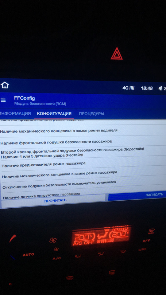 1. Зависит от типа подключения проводки датчика пристегнутого ремня и наличия пассажира
