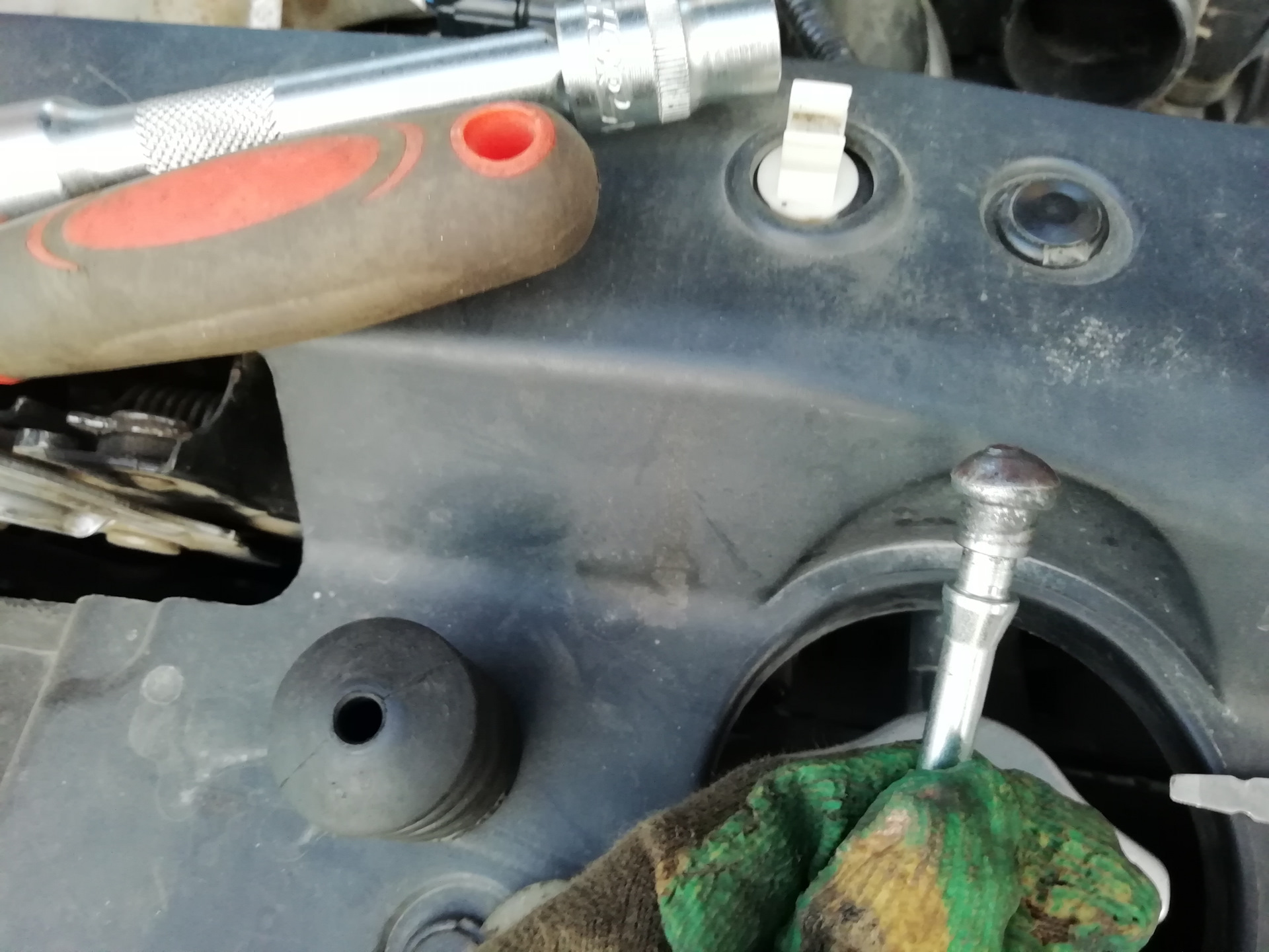 До этого я как то уже отгибал пыльник вилки сцепления и брызгал туды тефлоновой смазкой — результат был хорош. И вот я решил снова там повошкаться, но зайти немного дальше…ну не настолько, чтобы поменять детали на новые, а хотя бы смазать старые))
