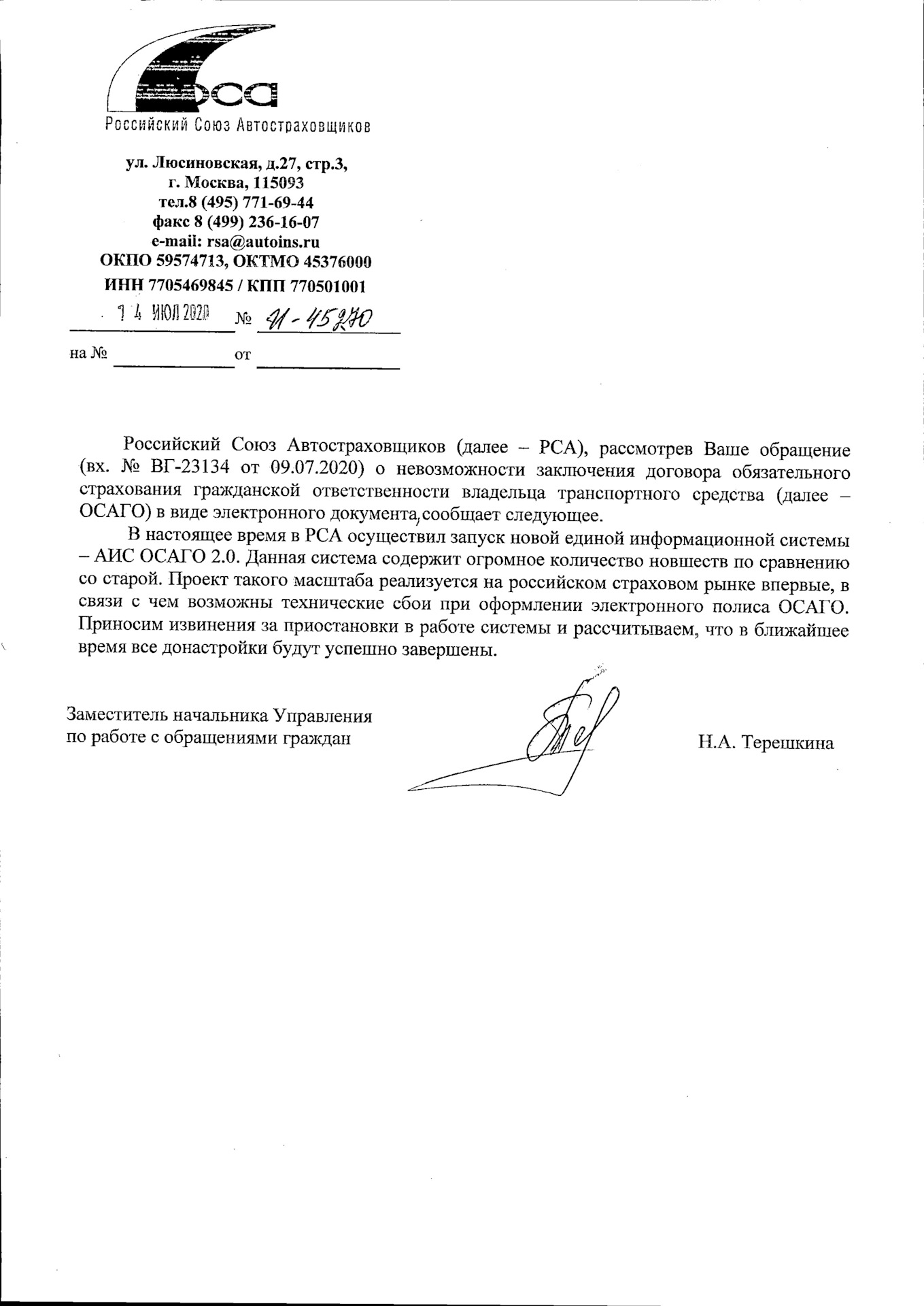 ППС сегодня (15.07.20) пришел ответ от РСА