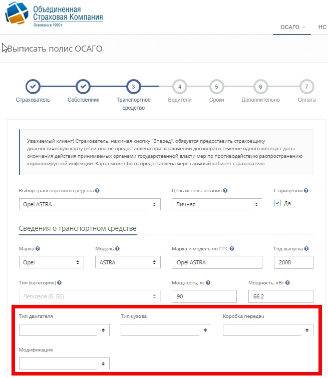 Ввели новую форму для оформления полиса он-лайн где дополнительно ввели