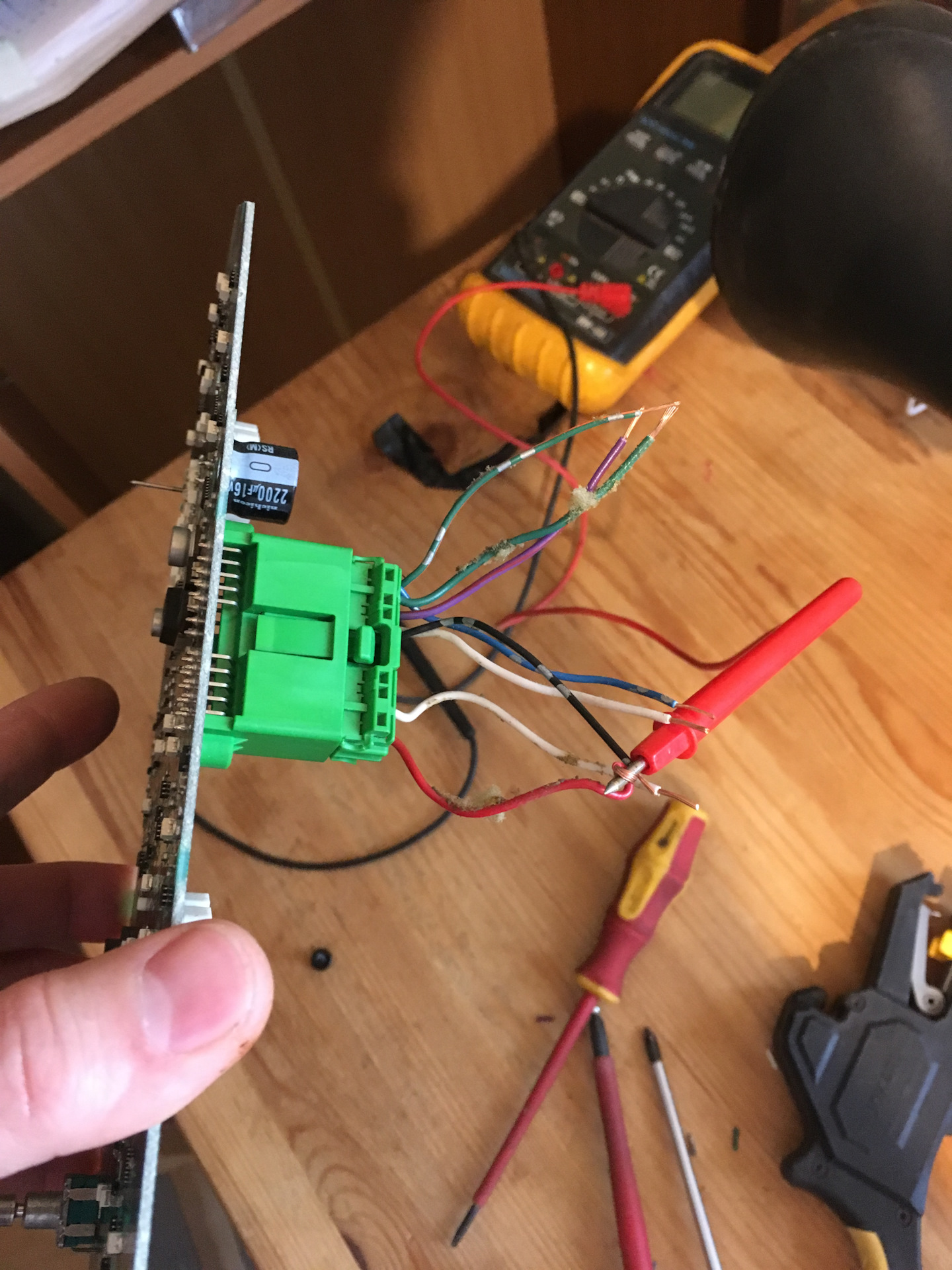 Довольный, удовлетворенный собой, собираю панель, лечу на работу и тут опять… стрелки упали, я разозлился и поник :-( Ну, думаю, осталось только снять китайскую сигналку от предыдущей владелицы (сигналкой не пользовался), может от времени в местах кустарной установки образовалась гниль или окисел, или может удастся найти проблему дальше по косе в пучке проводов.
