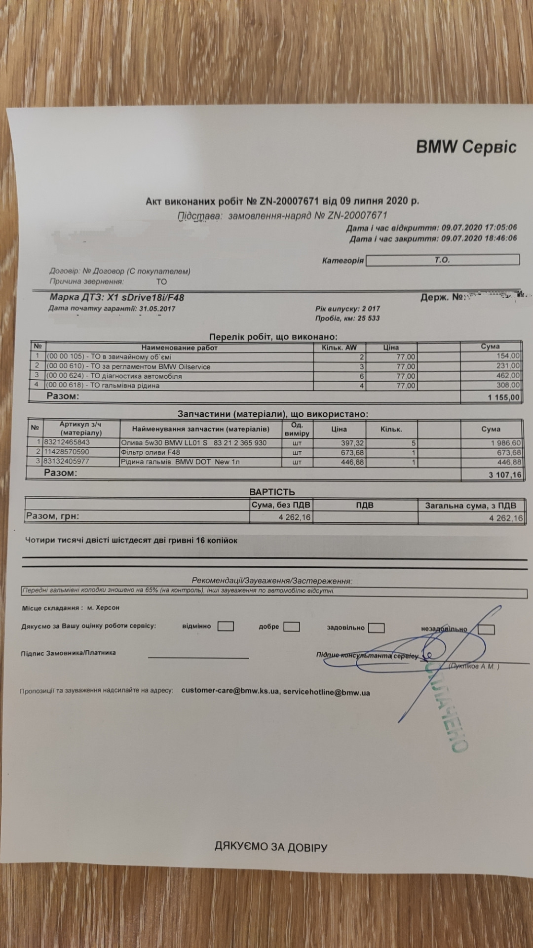 Что касается технического обслуживания, то все как обычно при посещении официального дилера считали информацию с ключа и машина попросила заменить масло и тормозную жидкость. Тормозная жидкость сигнализировала о замене ещё с марта (три года с момента производства), но из-за карантина и того факта, что машина была произведена в феврале, а эксплуатироваться только с июня, решил дождаться срока замены моторного масла и заманить все за один раз. Теперь, кстати, тормозная жидкость будет меняться с интервалом в 2 года.