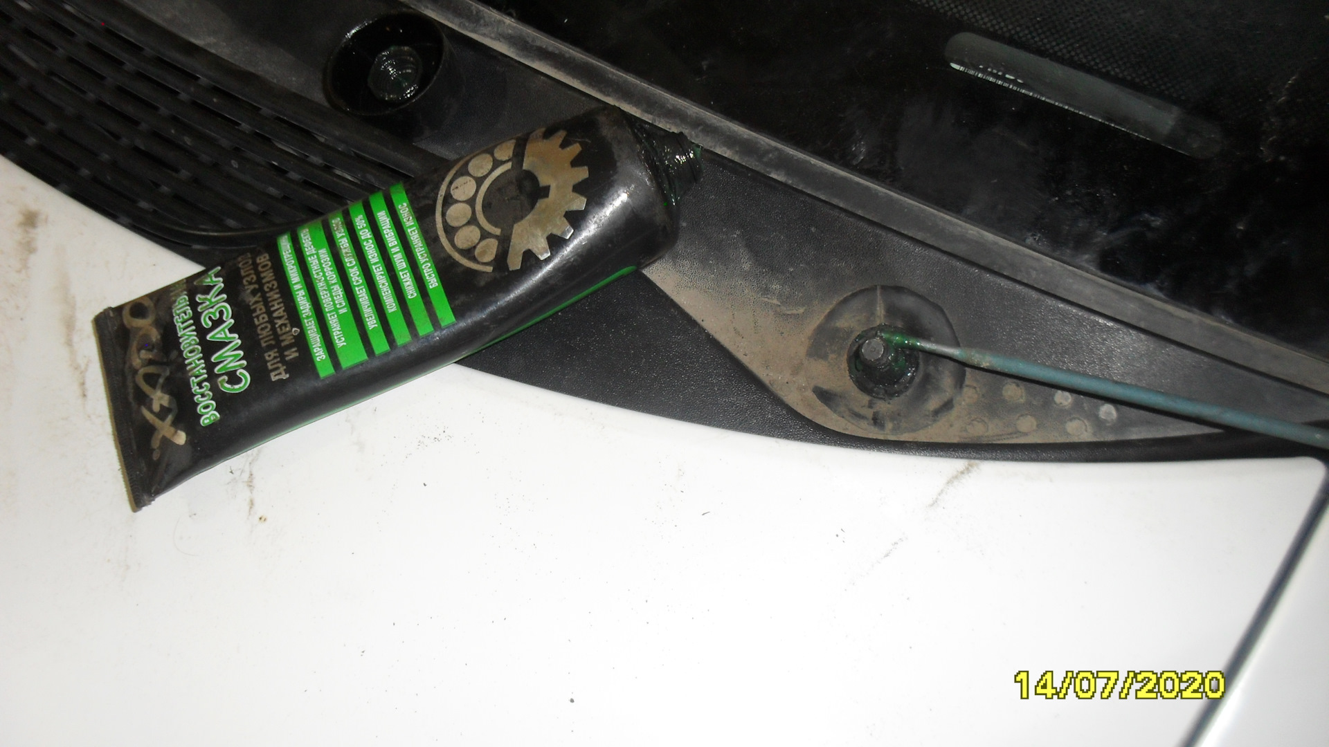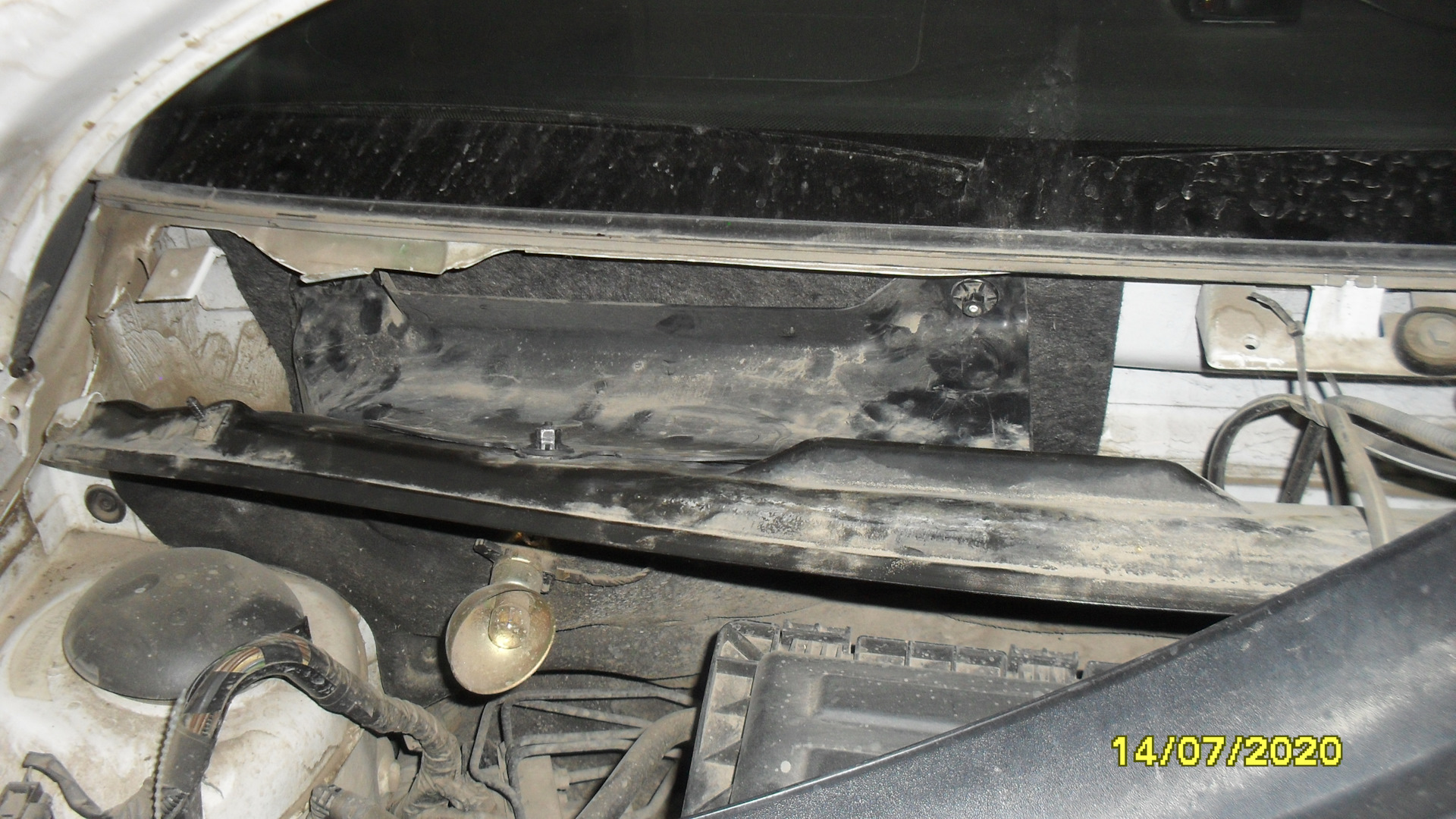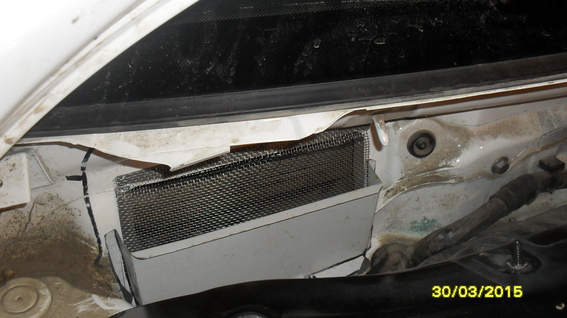 Такая большая решётка во весь капот — ни к чему. Через неё в корыто проникает уйма пыли, воды и снега, а ведь именно из корыта идёт забор воздуха на вентиляцию салона.(Кстати, там размер воздухазабора на вентилятор печки чуть больше ладони.) Так что на жабо вполне достаточно одной маленькой решётки, как это реализовано на многих автомобилях самых разных марок. Я ради симметрии оставил две крайних.