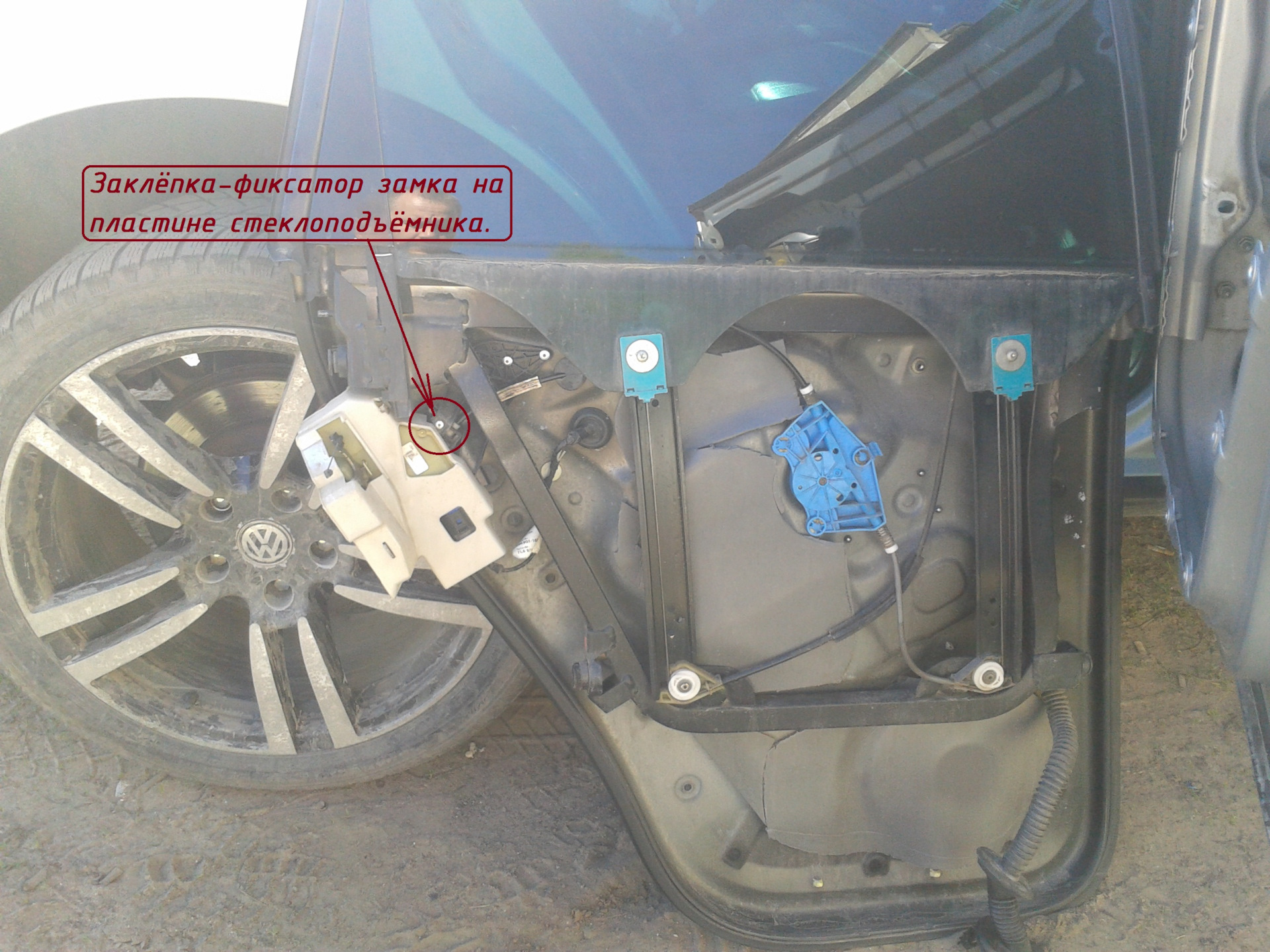 Затем закрепил замок на рамке стеклоподъёмника, вернул всё это на прежнее место и в течении получаса отрегулировал дверь.
