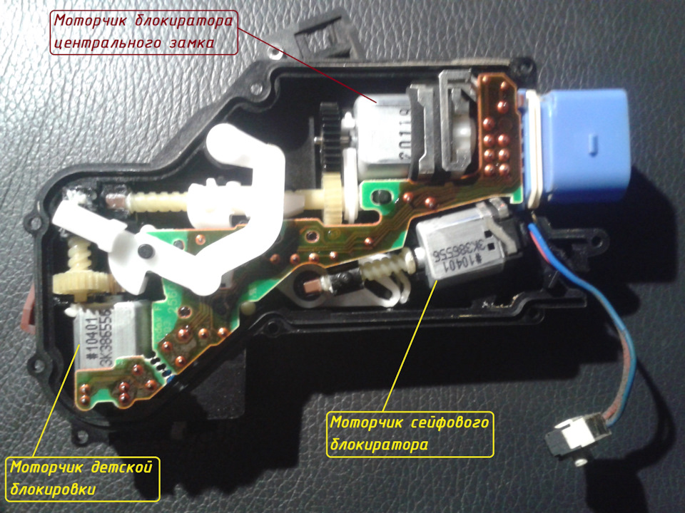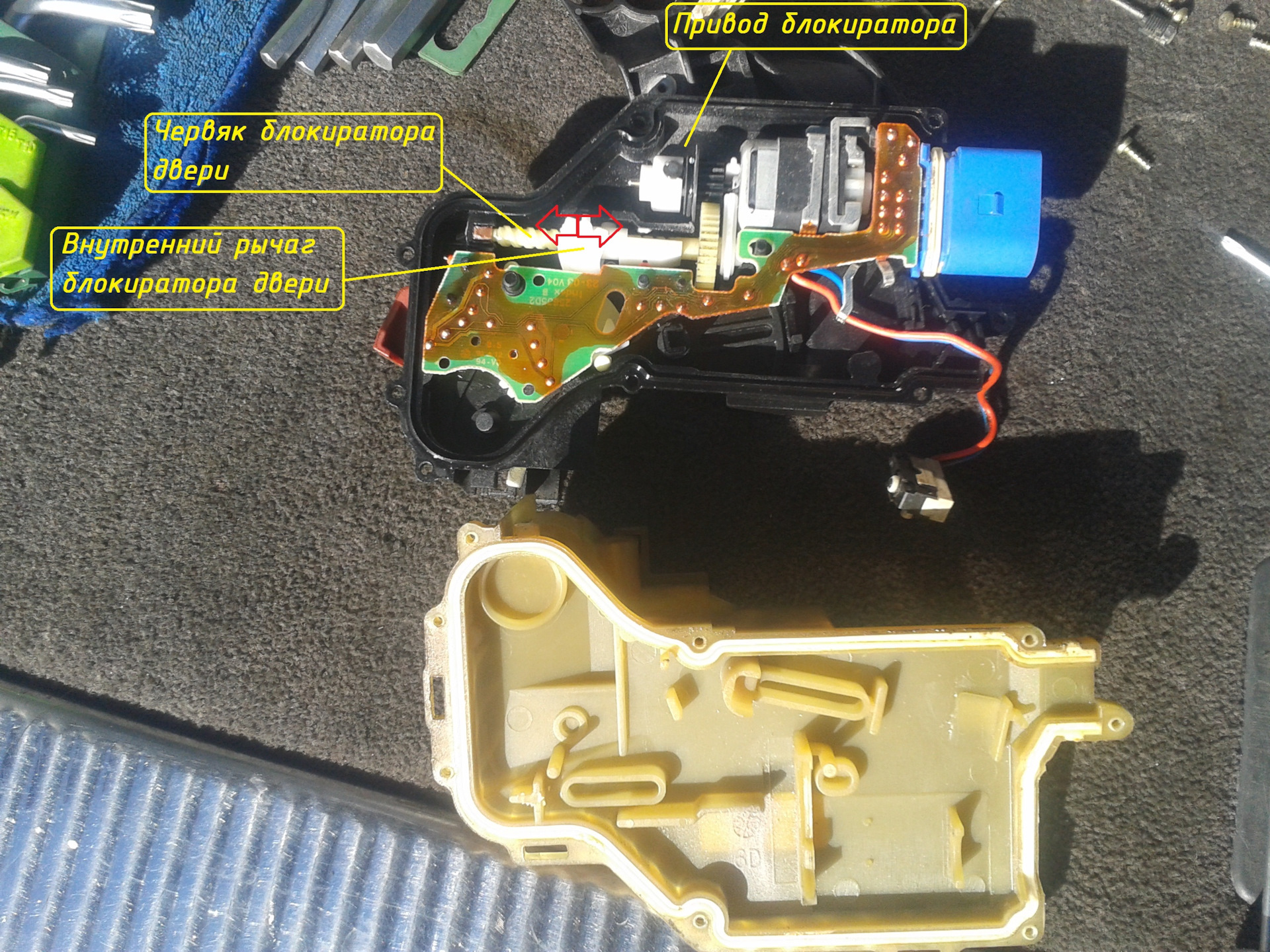 У него был "рестайл", корпус похожий, но начинка другая. И ещё у него шестерёнка блокиратора замка уже без промежуточной скобы как у меня (шестерня моторчика крутит шестерню блокиратора напрямую), так надёжнее.