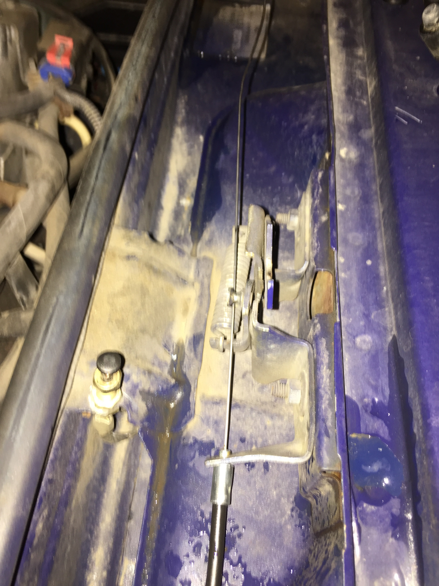 У этого гребанного тросика слишком маленький наконечник и при первом открытии капота он просто проскочил через дырку рычага.