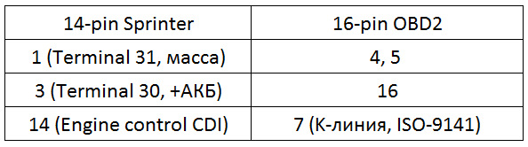 2. Переходник 14-pin sprinter на 16-pin OBD2.
