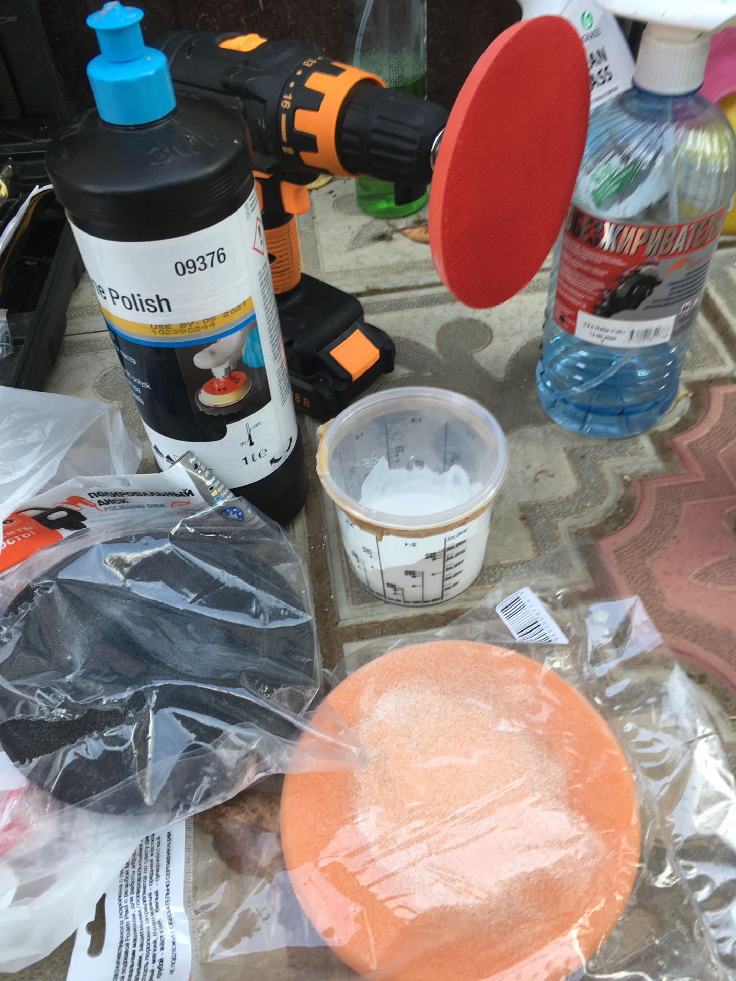 Внушительный арсенал. Всякие полирольки, шампуньки, воск … У меня Тесть любит это дело. Да и я когда на это время есть)