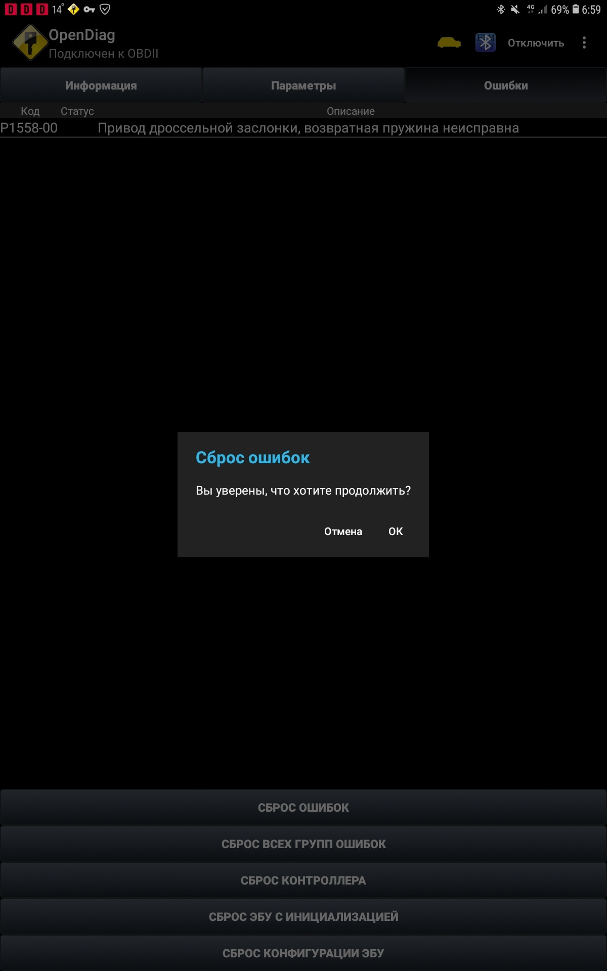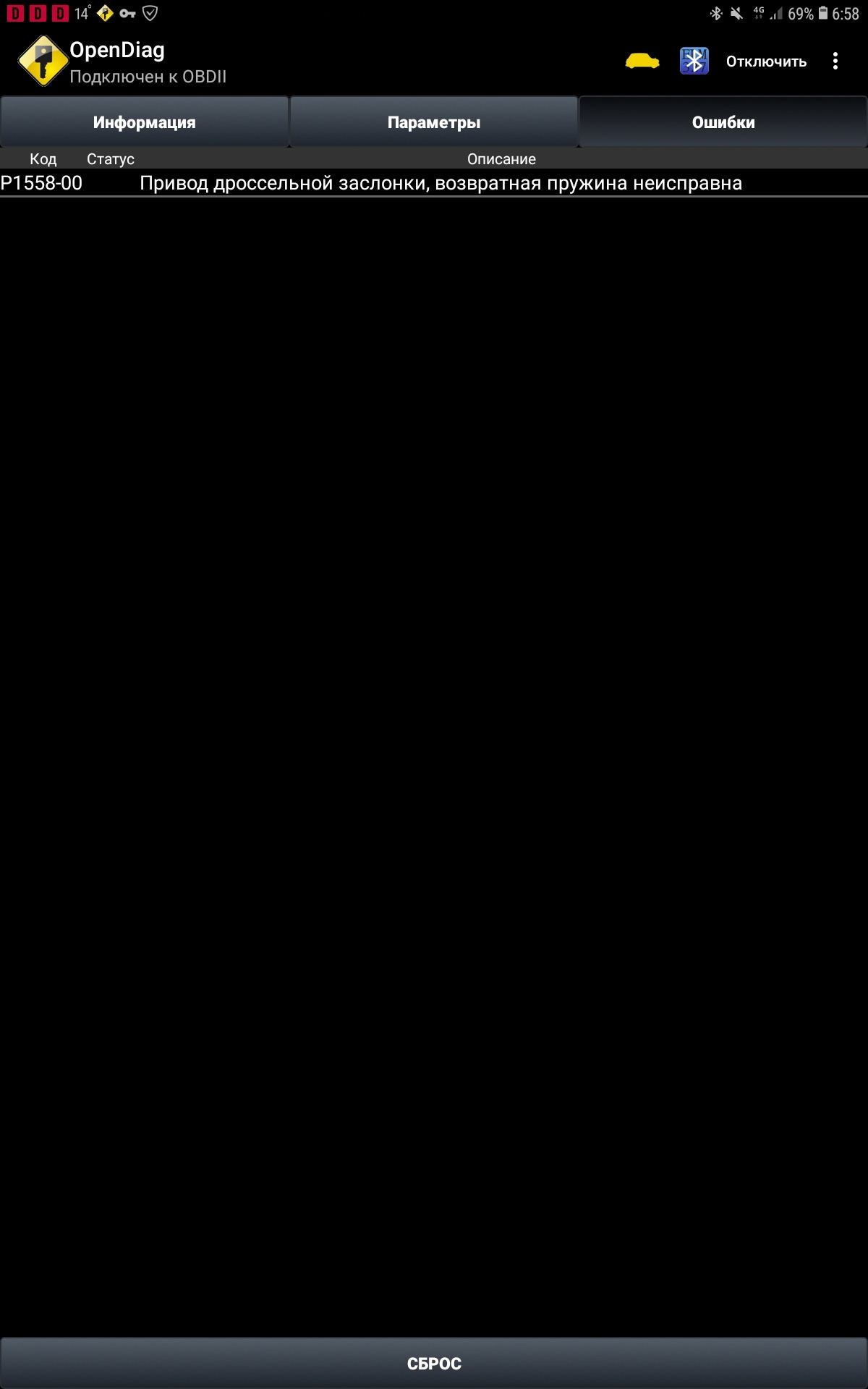P1558-00 эта хрень говорит о том, что дроссель возвращается в исходное нулевое положение по времени дольше рассчётного. Была однажды такая ошибка. Год или более уже назад. Внешне никак не сказывается на поведении авто, все ровно, плавно, адекватно. Сбрасываем, забываем.