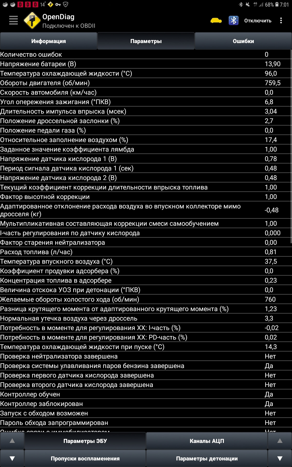 Всё остальное в норме, абсолютное давление во впуске близится к 0.3 бар на прогертом ХХ. Подсосов точно нет. Едем дальше.