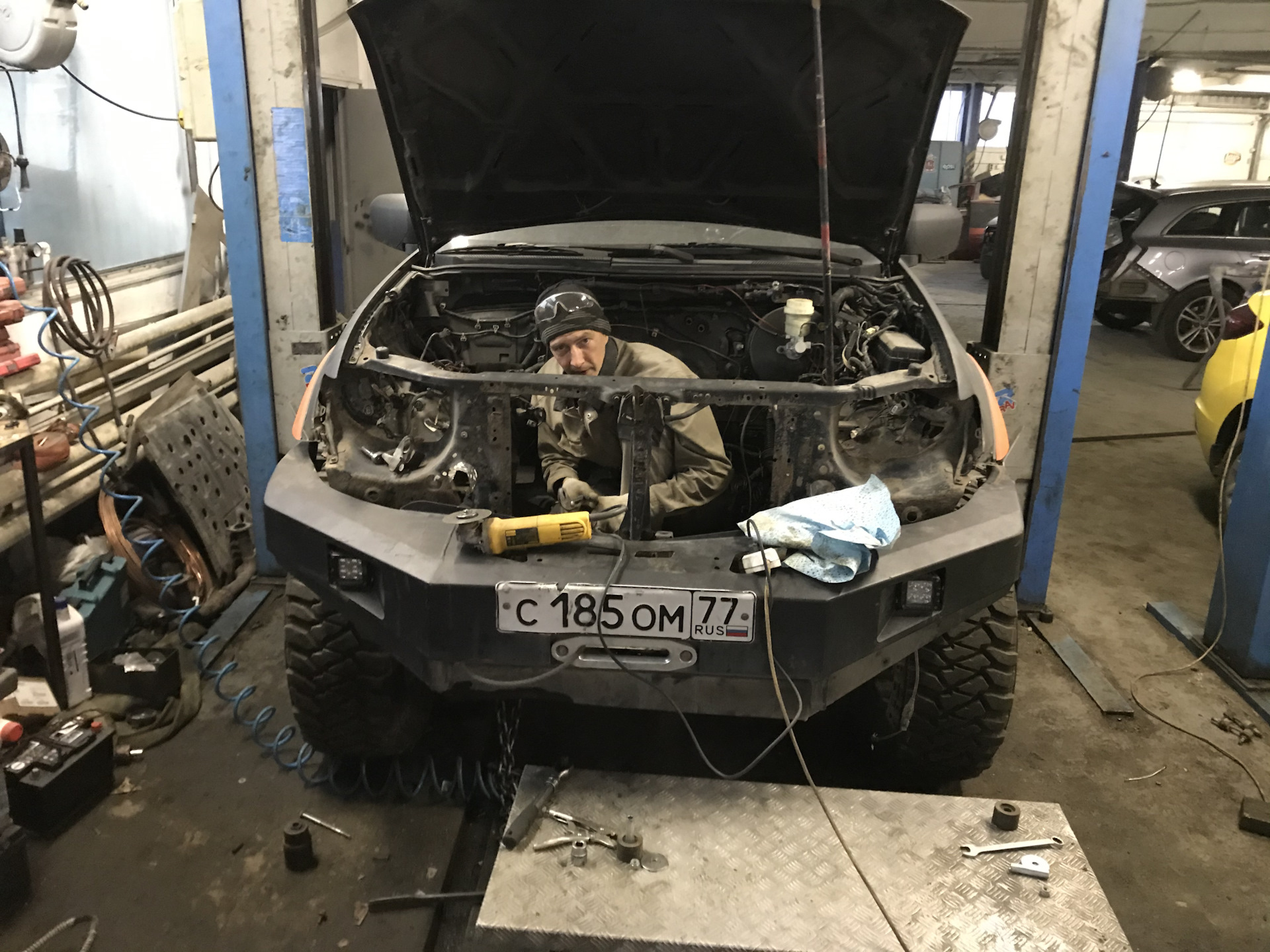 пришло время продолжить проект а точнее появилось время))) после долгой эксплуатации машины с продавленными средними опорами кабины само собой пострадали и передние опоры… после восстановления средних и задних опор кабина поднялась как должно и передние кронштейны не доставали до новых опор сантиметра три ну и плюс ко всему металл кое где лопнул и подгнил. пришлось много чего срезать и наварить новыми листами стали. теперь все шесть опор надежно крепят кабину))) ну и в сумме появился боди-лифт на 70мм)))) осталось восстановить арки которые до этого были грубо вмяты кувалдами чтобы 35" колеса могли свободно поворачиваться. об этом в следующей записи)))