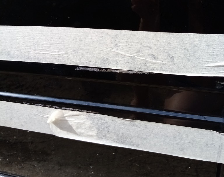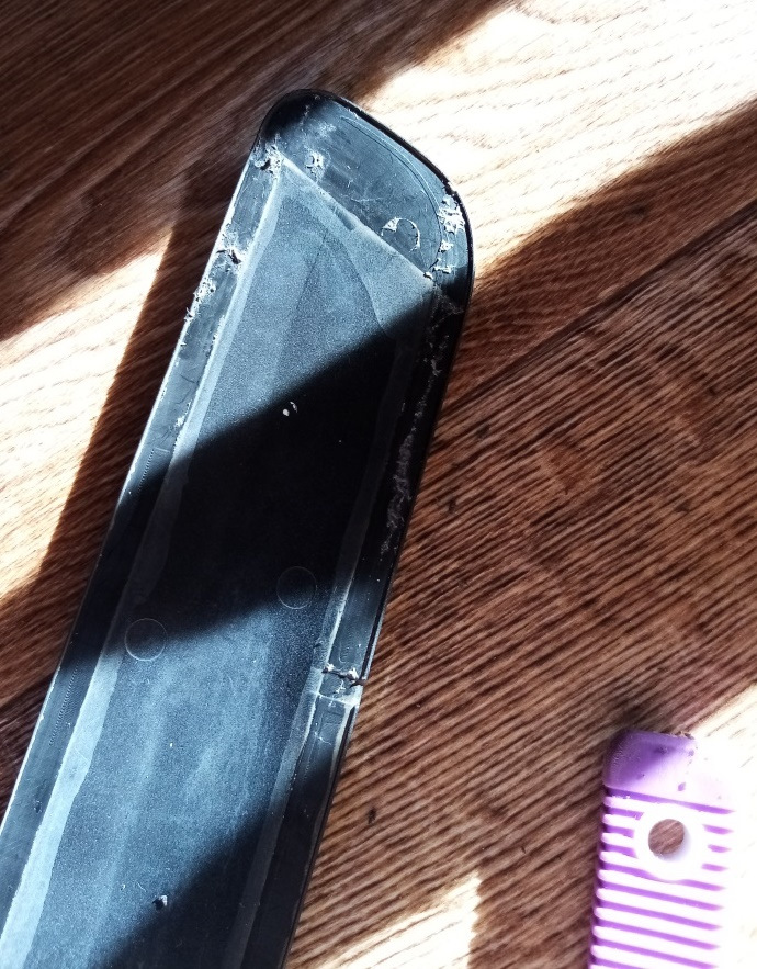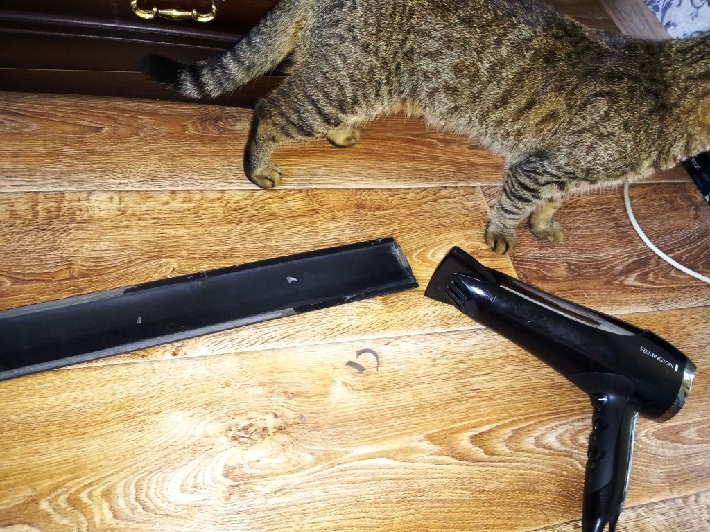 Нагревем скотч феном и он весьма неплохо отходит от пластика. И тут главное не спешить, аккуратно скатывающими и тянущими движениями удаляем скотч с молдинга. Притом сам скотч держался намертво. Если бы не фен, то его было бы просто невозможно удалить без спец средств.