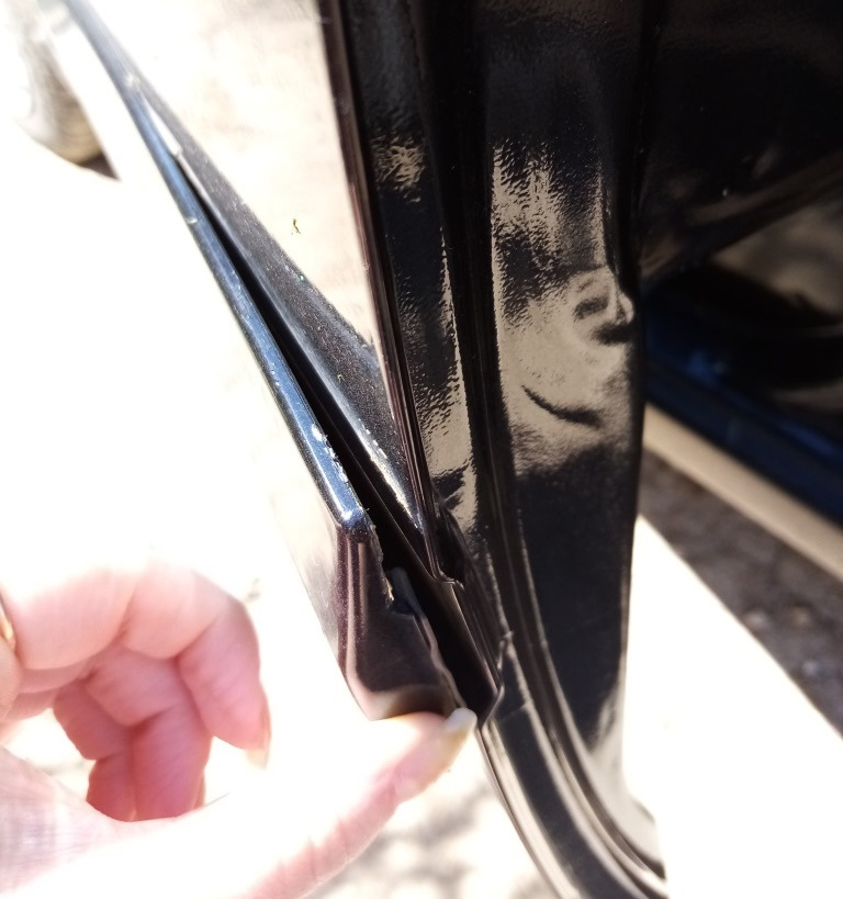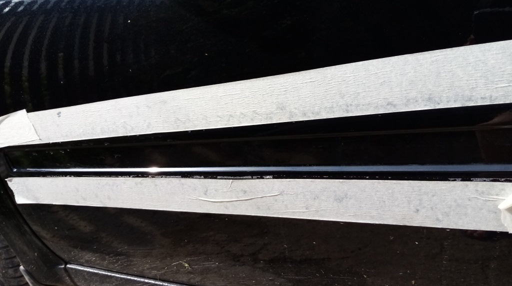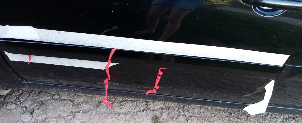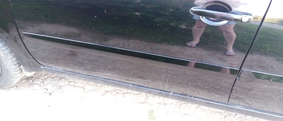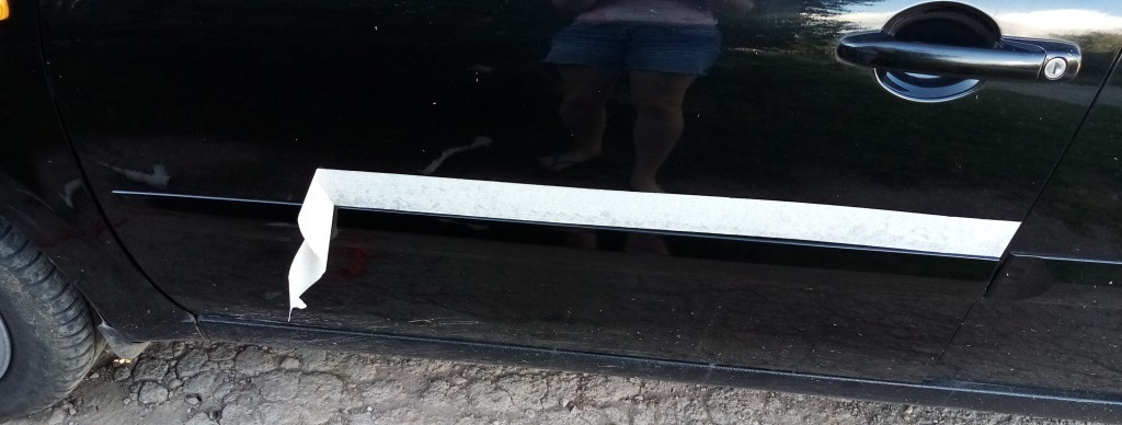 Потом аккуратно сняла оставшиеся ленточки и прижала молдинг к двери машины.
