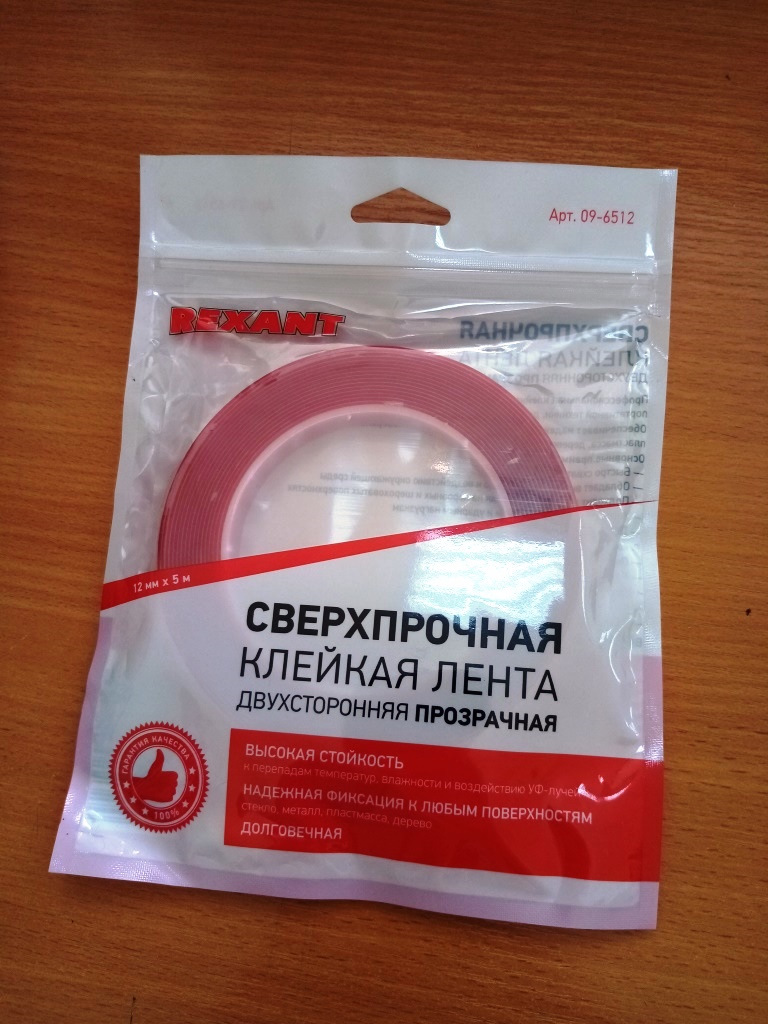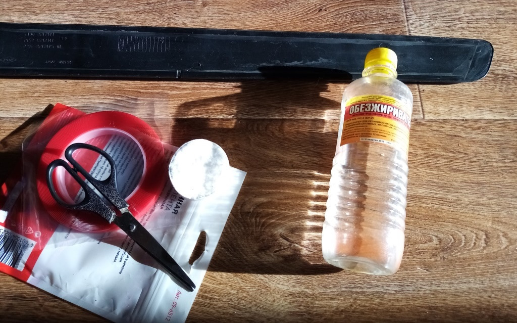 Теперь нам понадобится двухсторонний скотч и обезжириватель.
