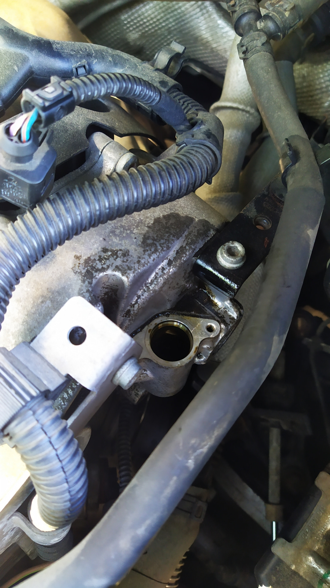 А заметил когда в районе термостата всё обосрано было, думал антифриз давит, оказалось масло, думаю откуда оно там?))