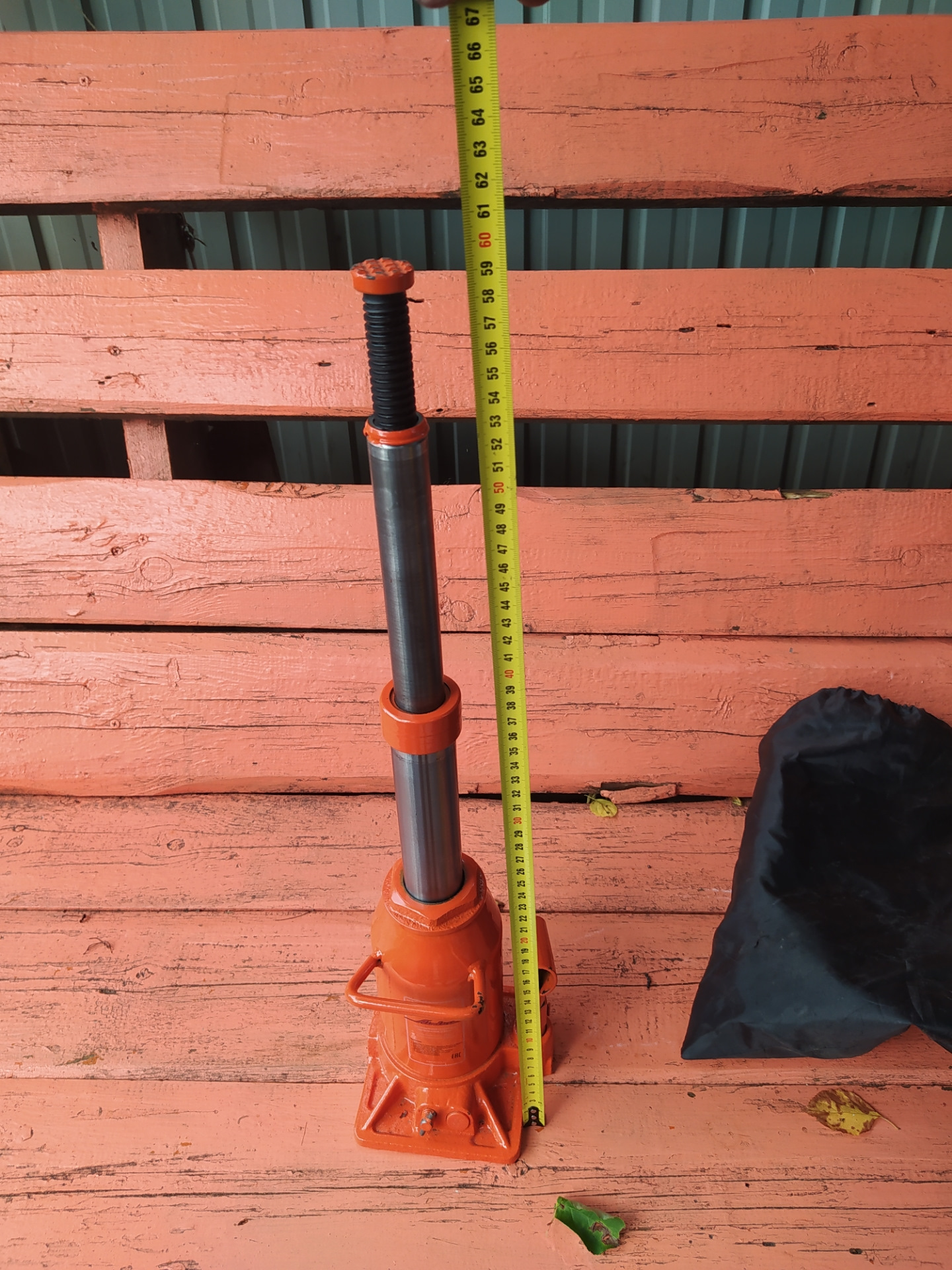 Тоннаж я хотел побольше, но с таким ходом не было вариантов. Но, как показала практика, а это уже целых 5 раз я домкратил авто, его вполне хватает для одного колеса, поднимать ось я не пробовал, но думаю на большом штоке он справится.