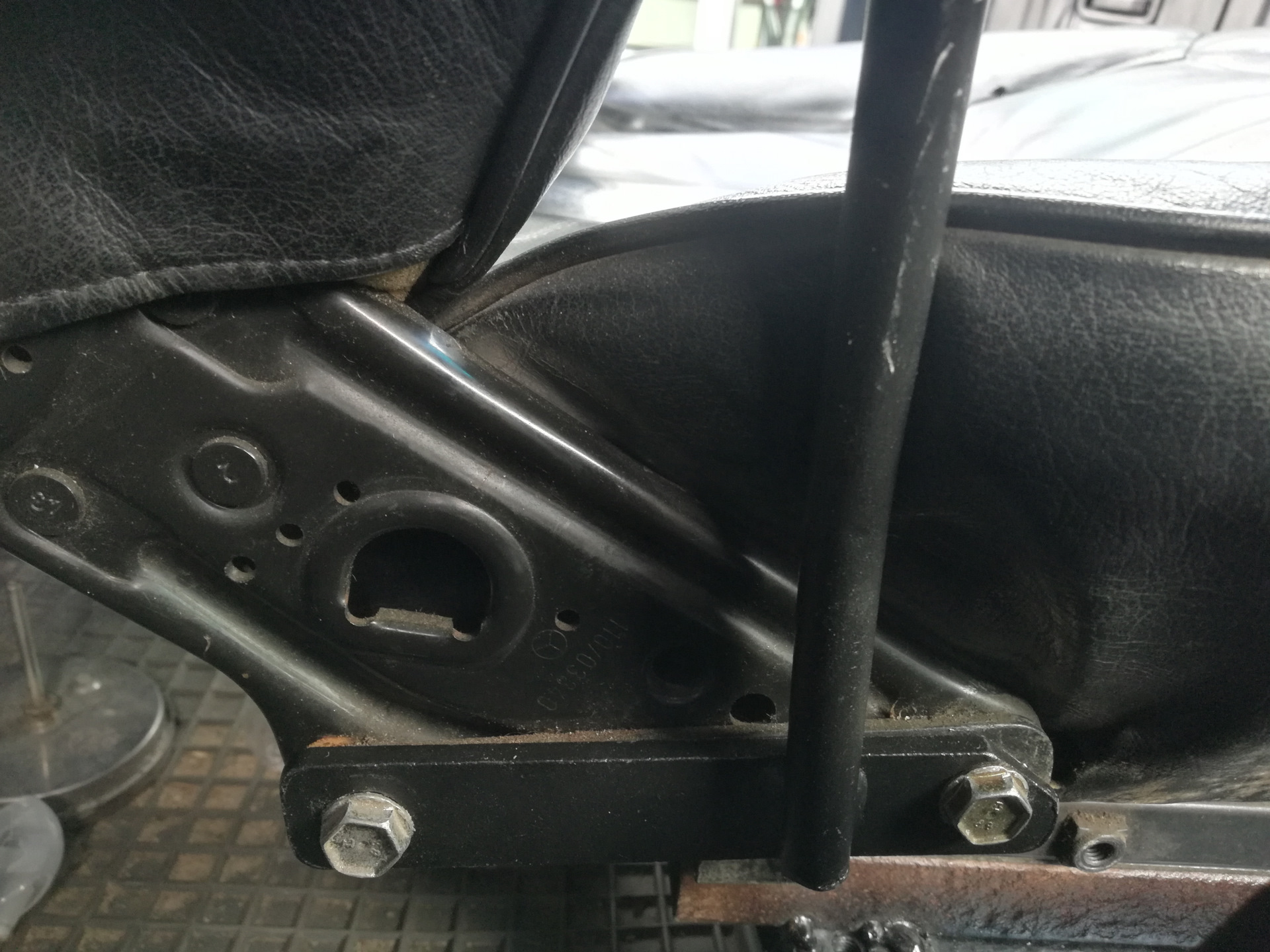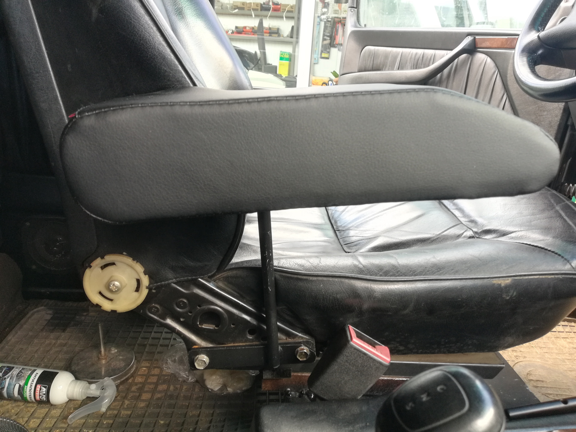 Просто откручиваем головкой на 13 два болта, которыми, с торца сиденья, спинка прикручена к нижней части сиденья, закладываем туда кронштейн этого подлокотника, просовываем винтики обратно и затягиваем!))) серьёзно))))) вы вообще понимаете?) расстояние между болтами, ширина пластинки, высота подлокотника, все абсолютно совпало! Я просто офигел с этого!