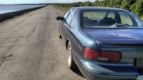 Как же классно он выглядит. Никогда не думал, что столь современный дизайн дисков с заниженными пружинами будет кстати к такой классике. Выбор пружин очень верный, в результате, достаточно агрессивный вид с эффектами американской гигантомании.