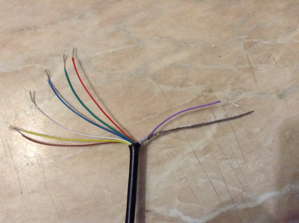 Когда распотрошил провод от ipod, понял, что цвета и количество проводков не совпадают с проводом Александра.У него их получилось 13шт+экран"масса".У меня же 7шт+экран"масса"