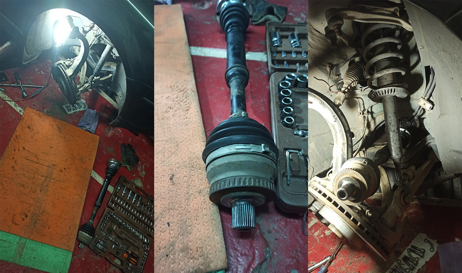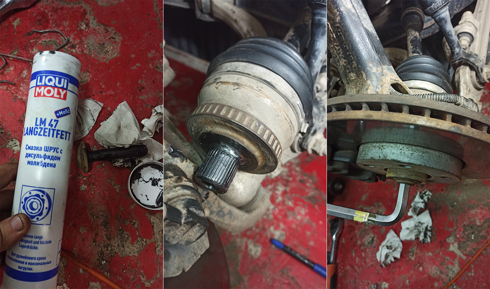 Хороший отчет! Но столько сделано дурной работы?! Наружный шрус выходит не разбирая ничего по подвеске, нужно просто максимально выкрутить руль и приподнять на домкрате ступицу, можно опустить машину подложив упор под нижние шаровые рычагов. Когда рычаги станут параллельно земле, шрус выходит из ступицы, а дальше все как ты делал.