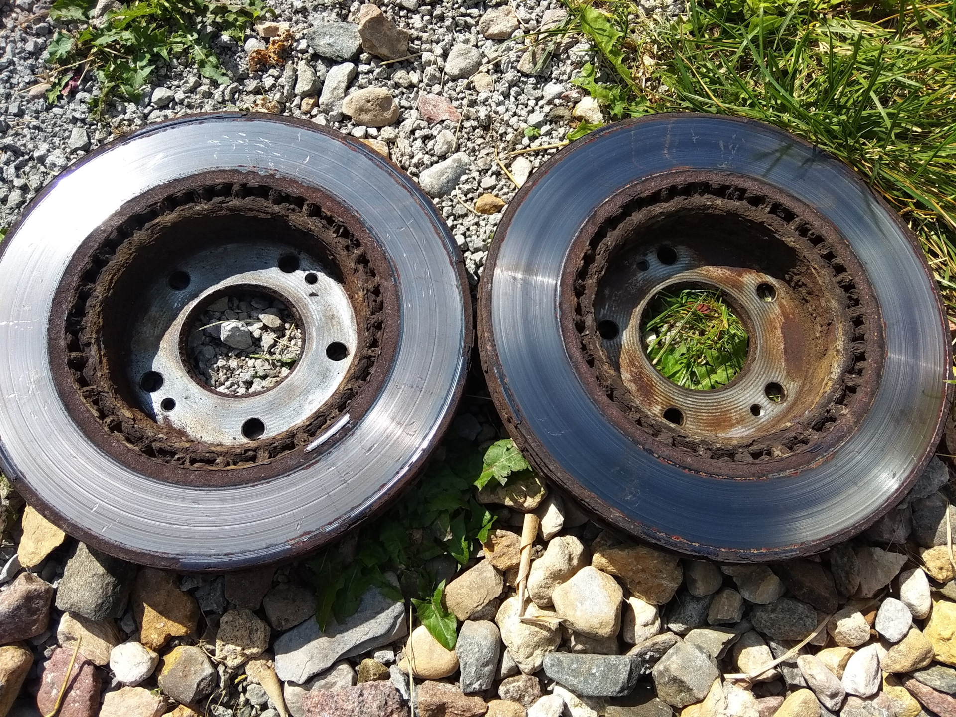 Состояние старых дисков не сказать бы что совсем страшное, но усталость уже присутствует, тем более, что езжу динамично и при этом на тормоза все годы эксплуатации ни разу не жаловался.