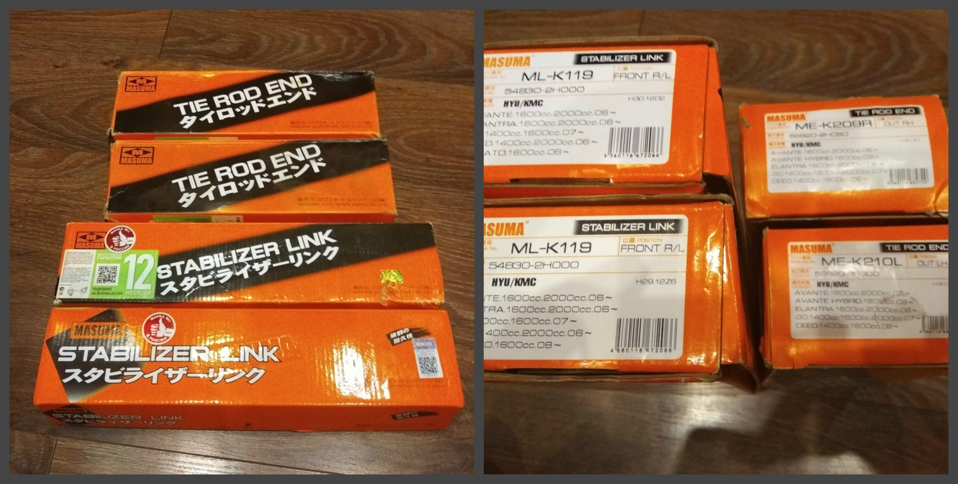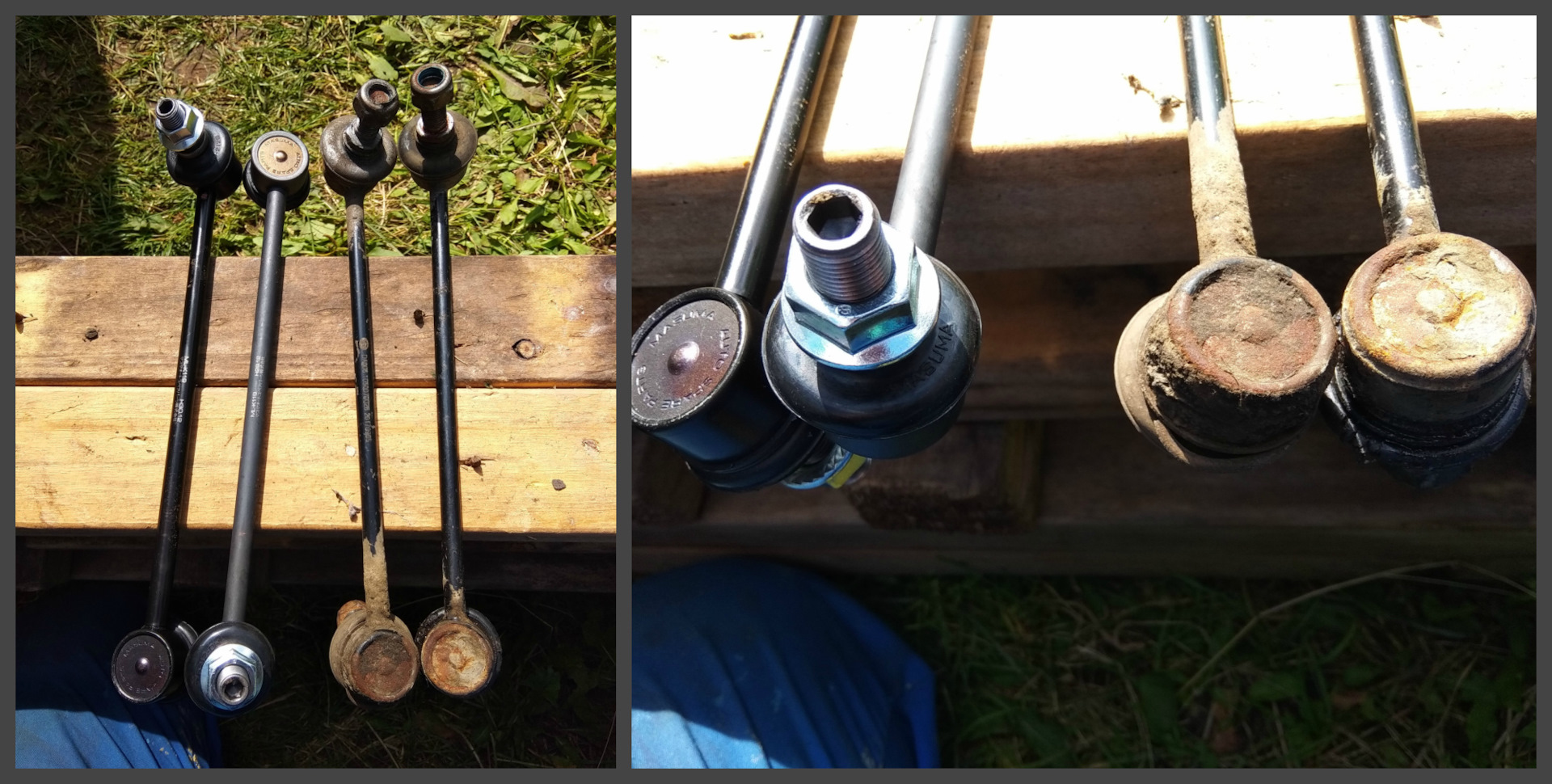 После того, как были демонтированы диски, решил сразу же заменить и стойки стабилизатора. Кстати говоря, стойки стабилизатора фирмы DODA, которые я перебирал перед установкой и ставил на машину, прошли более 45.000 км и не имели ни намека на износ. Но чего не сделаешь ради теста брендов, именно поэтому они были демонтированный, а на их место были установлены Masuma. Стойки же DODA будут отмыты, смазаны заново, заменен один пыльник, т.к. при демонтаже я его зарукожопил и убраны на полку, как в лучших моих традициях)