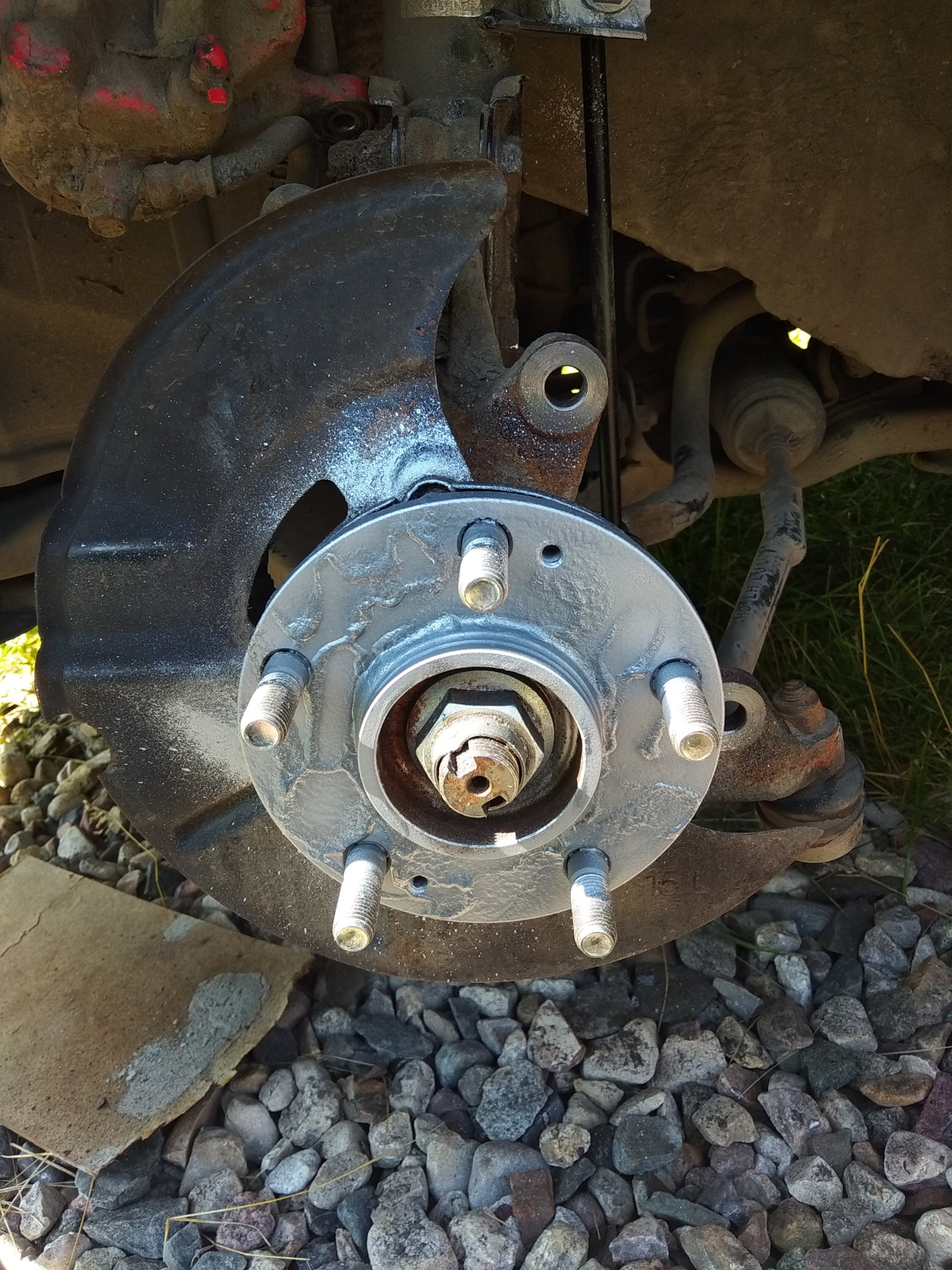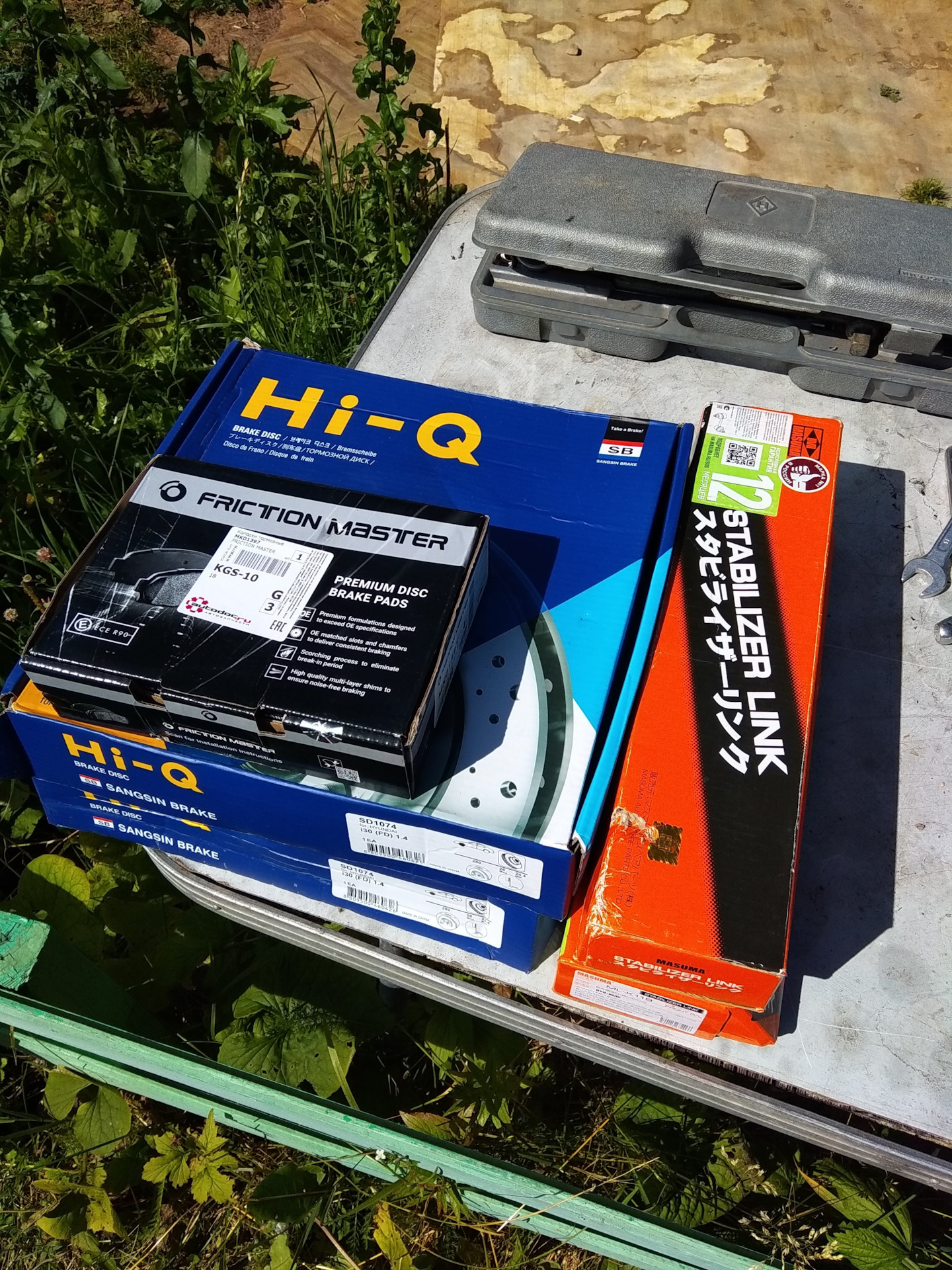 По стойкам стабилизатора опишу немного позже в данном посте, но сразу скажу, что их и рулевые наконечники мне прислала компания Masuma на обзор и тест драйв. Исходя из опыта того, что у меня их фирмы стоят рулевые тяги и ходят уже более 60.000 км, то претензий к данной фирме нет вообще. А на хонде так вообще передние тормоза полностью их бренда. Вернёмся к тормозам на Ц2… Старые диски снялись без проблем, даже винты крепления тормозных дисков выкрутились без проблем. Вот что значит — машина любит смазку)))