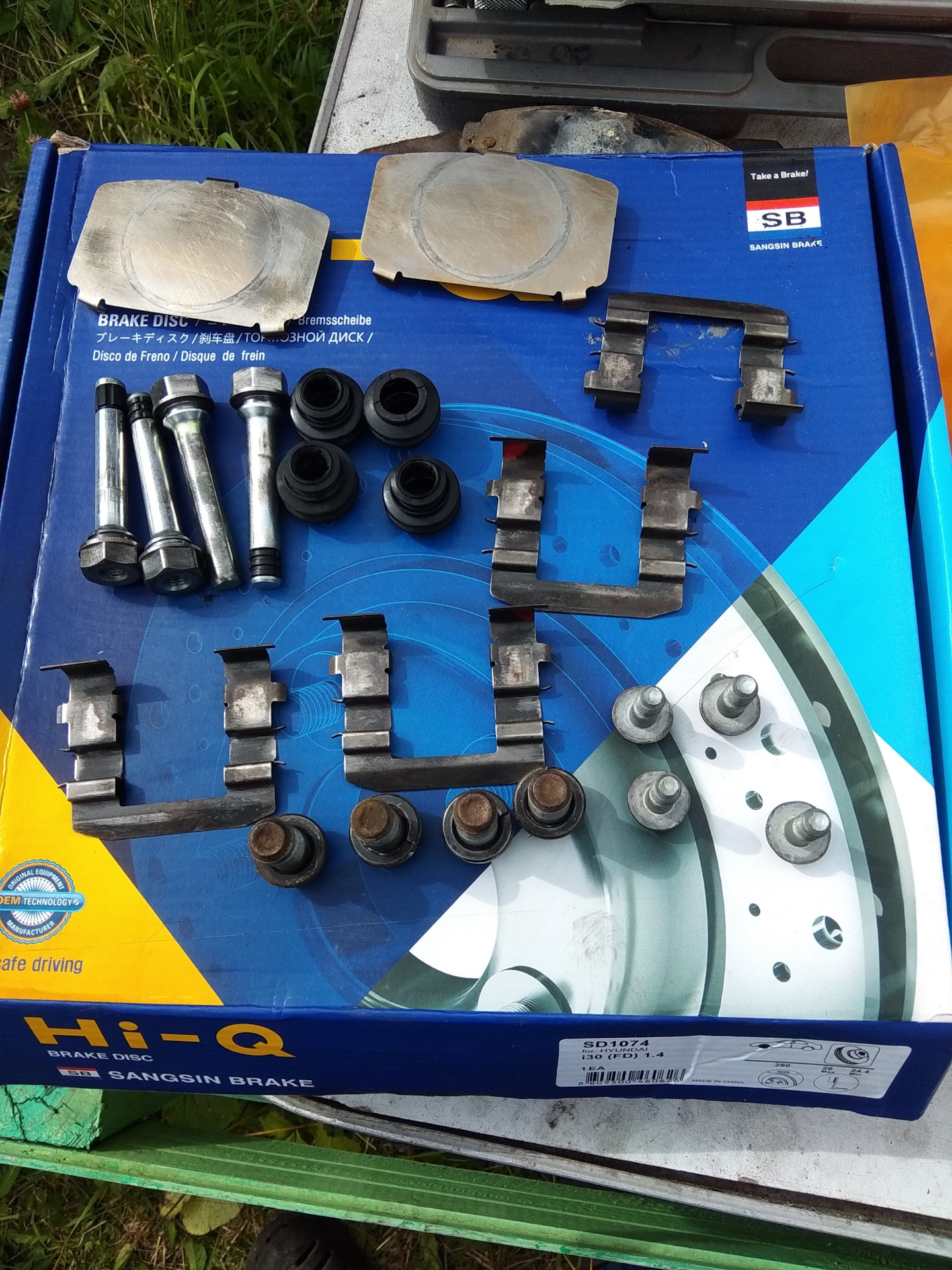 Сангсин не понравились, они какие-то ватные. Эти стояли до этого, торможение хорошее, ни разу не перегревались, диски не жрали. Одним словом, дал им ещё время, чтобы ещё раз их распробовать.