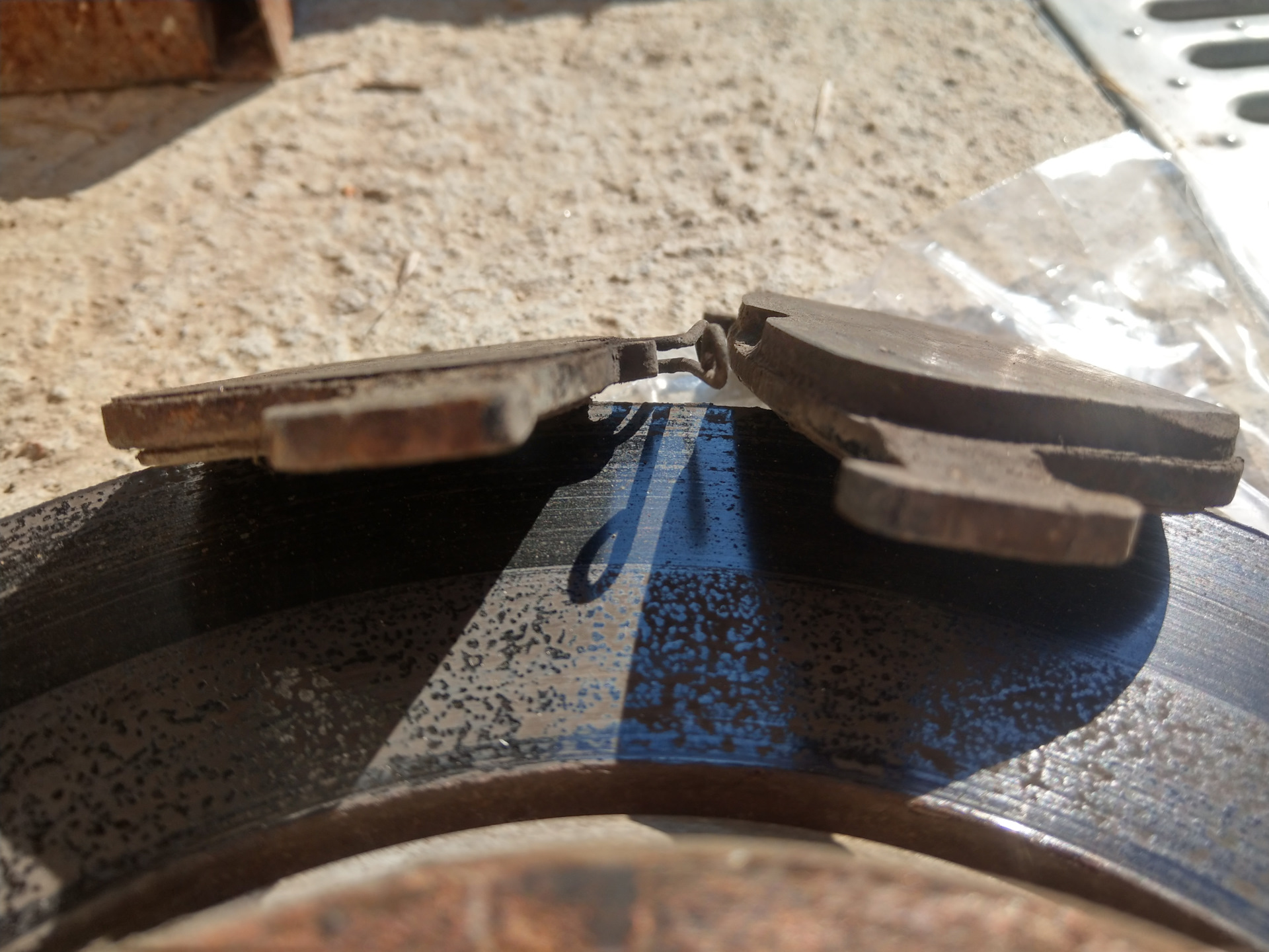 А оказалось, что внутренняя колодка вытерлась в нуль — покажу на фото.