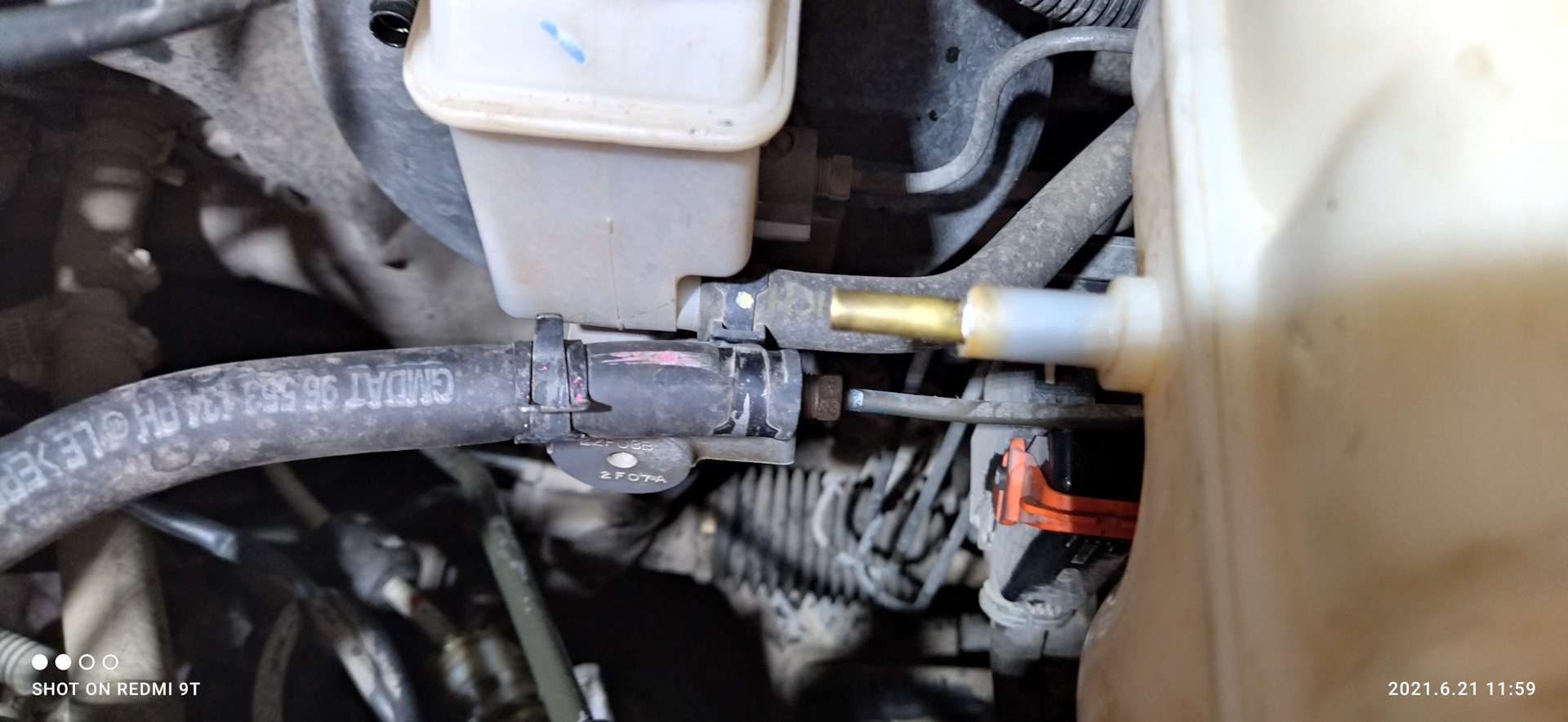 Дроссель был благополучно промыт, всё рядом находящееся проревизировано, на сломанный штуцер надет патрубок, а хомут на него был смещён максимально близко к стенке бака на уцелевшую часть. Вроде и помогло, не текло больше, но осадочек то остался.