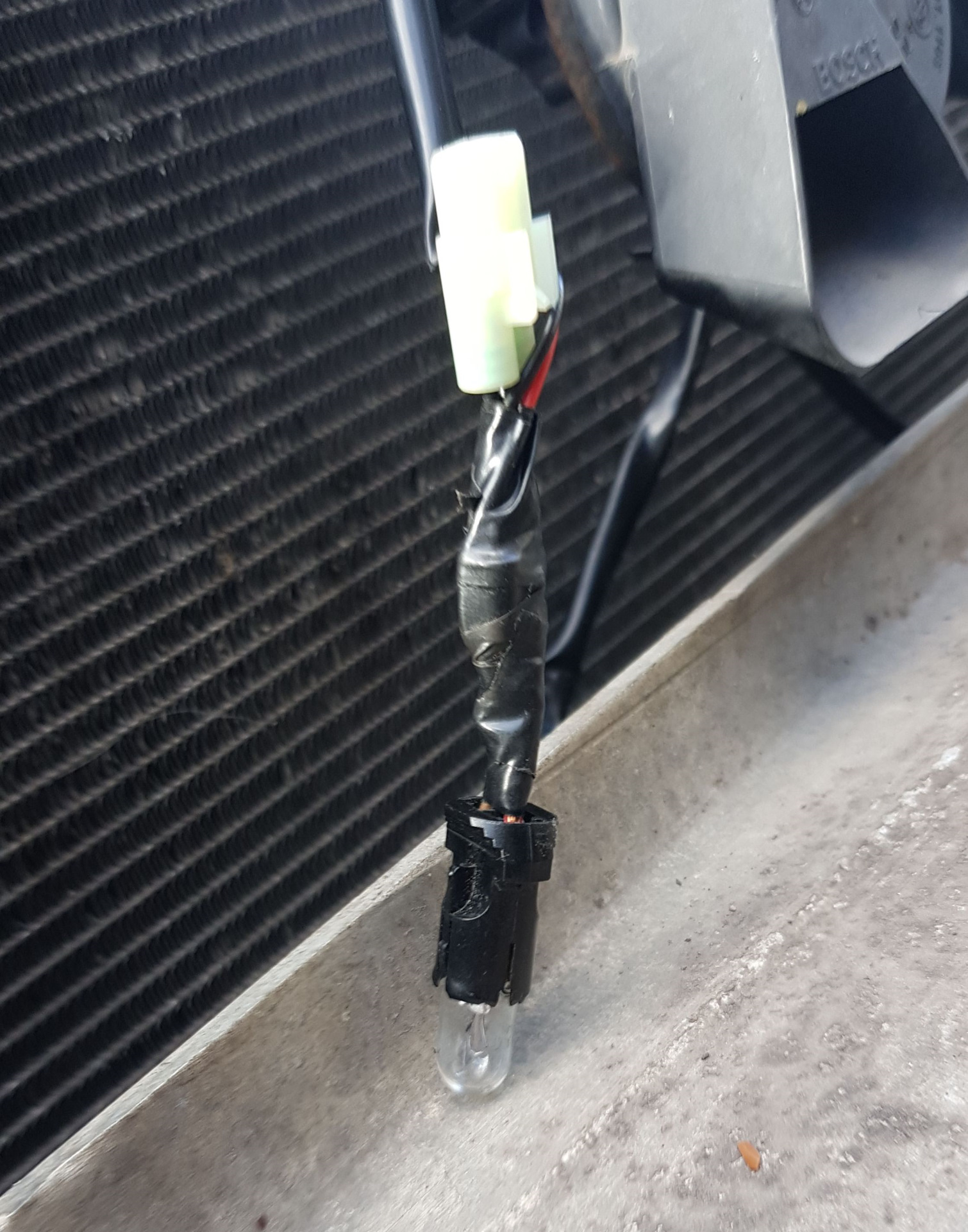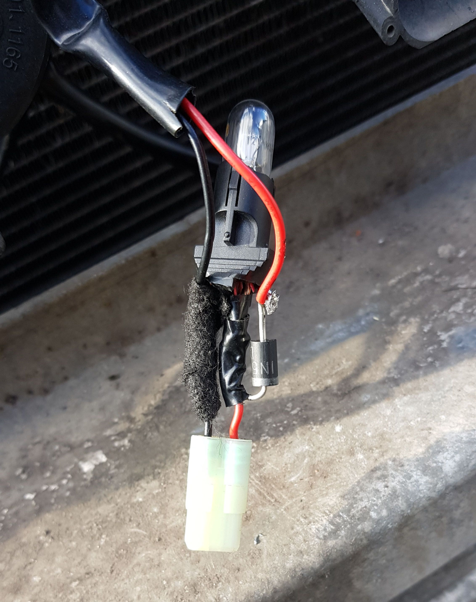 Под руками от неиспользованной проводки били патроны с лампочками 5W габаритов. Решил попробовать добавить по минимуму, а вдруг хватит. Слепил в каждой цепи "обманку". Вышло вот так:
