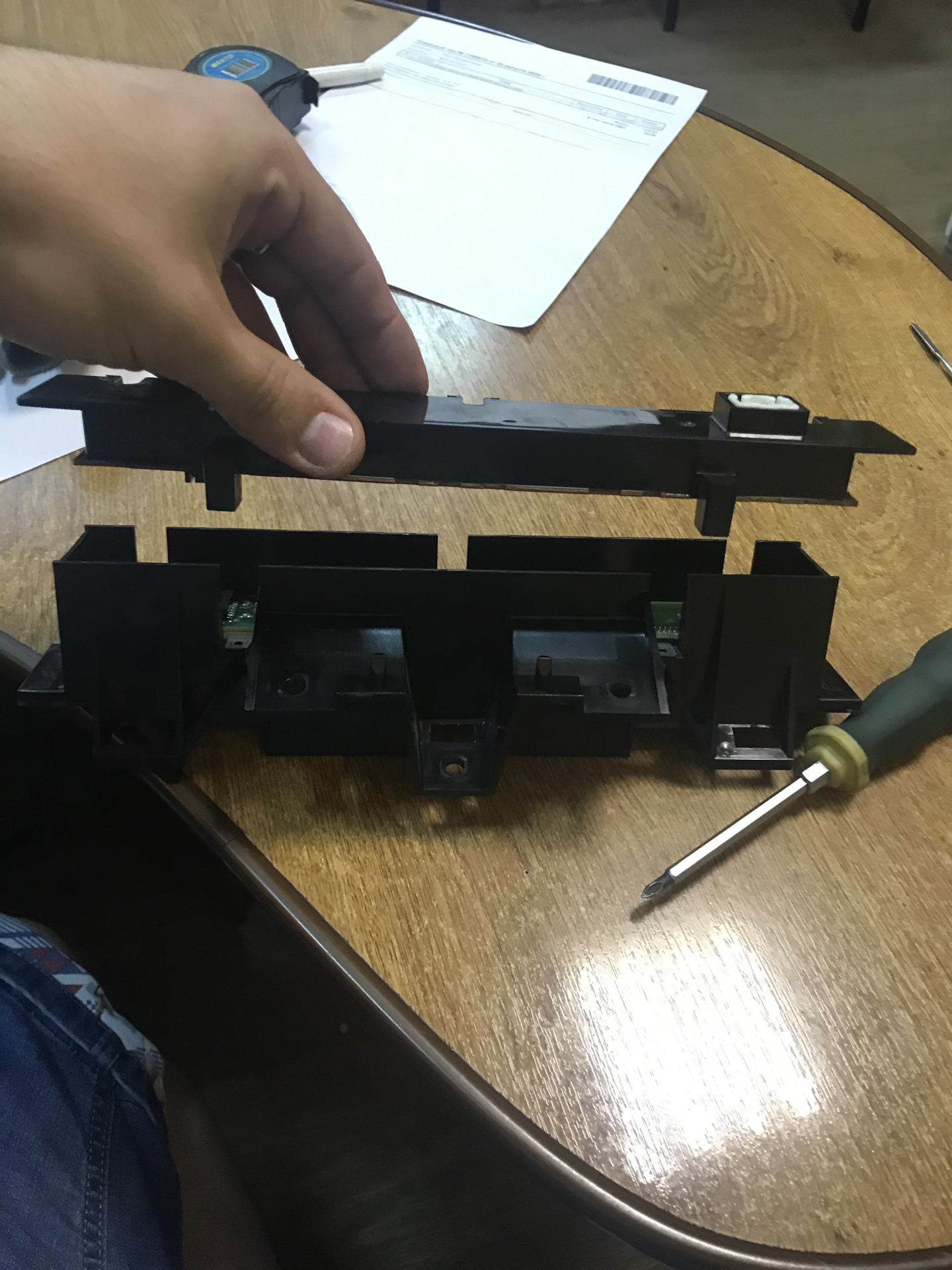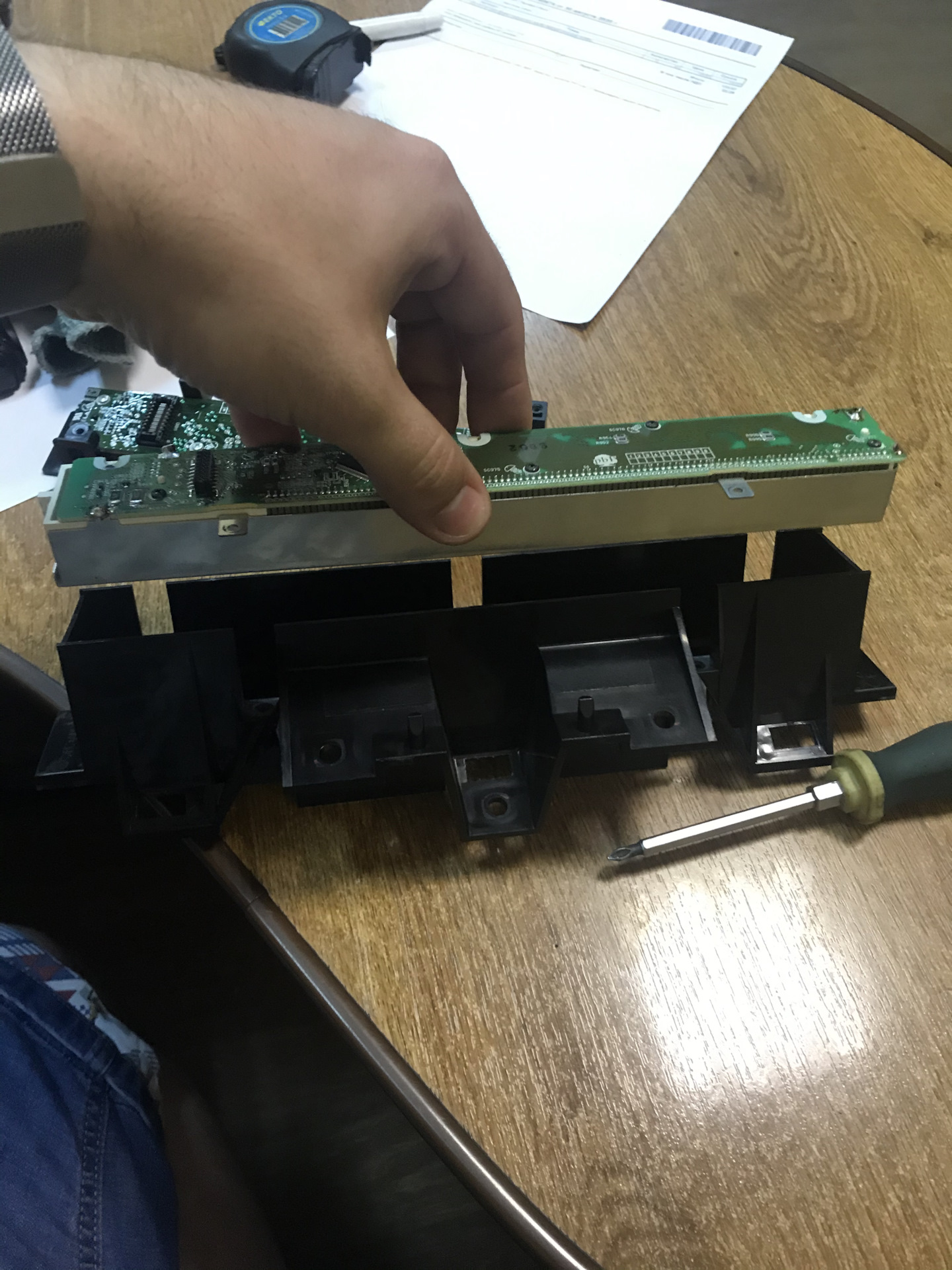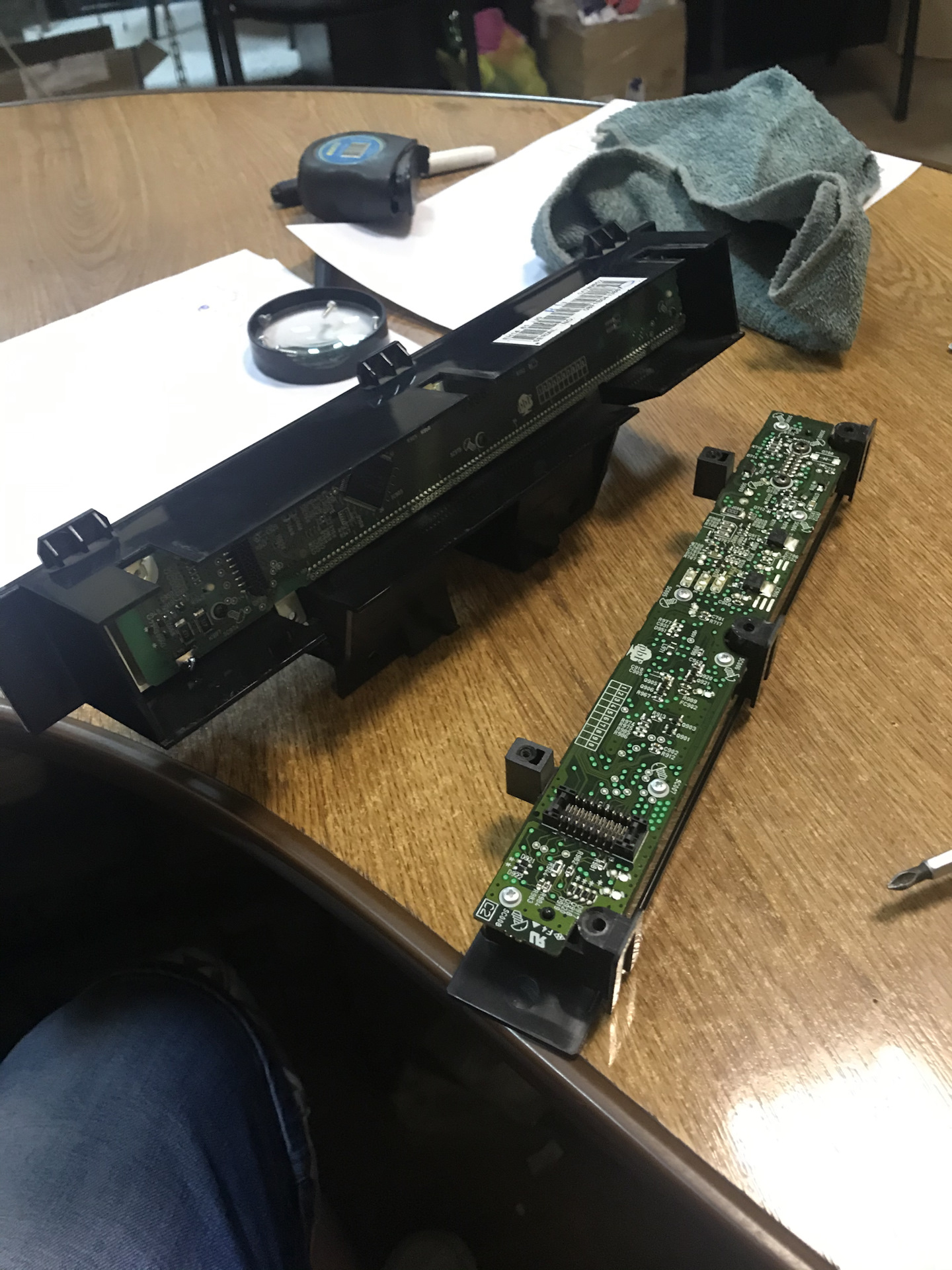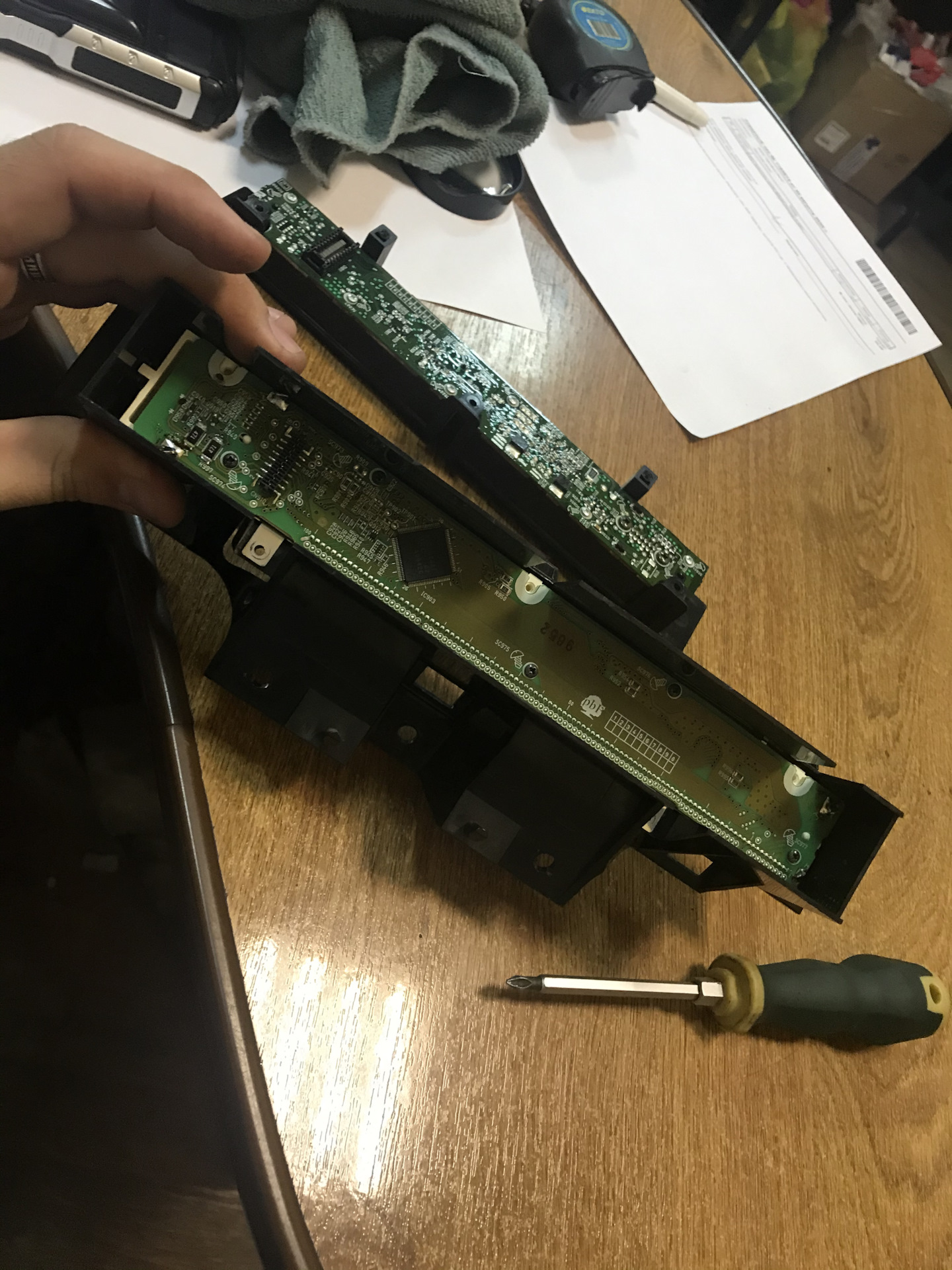 Аккуратно поддеваем корпус и достаём одну часть платы ( плата входит одна в другую как панелька на магнитофоне)