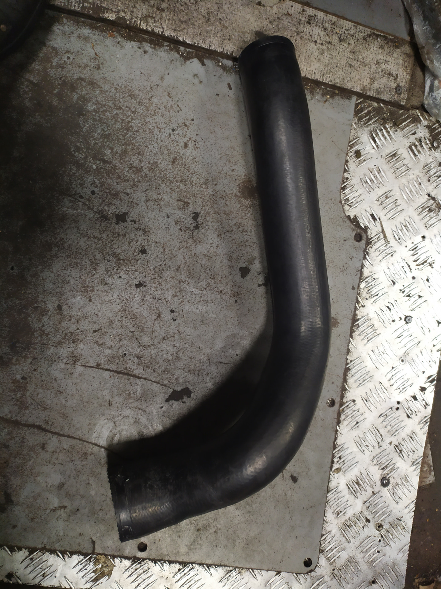 Поехал на автомобильный рынок (Москва, возле м. Кожуховская), взяв с собой виновника торжества для образца. Нашёл павильон с патрубками. Подобрали по диаметру (60 мм / 70 мм) и примерно по изгибу.