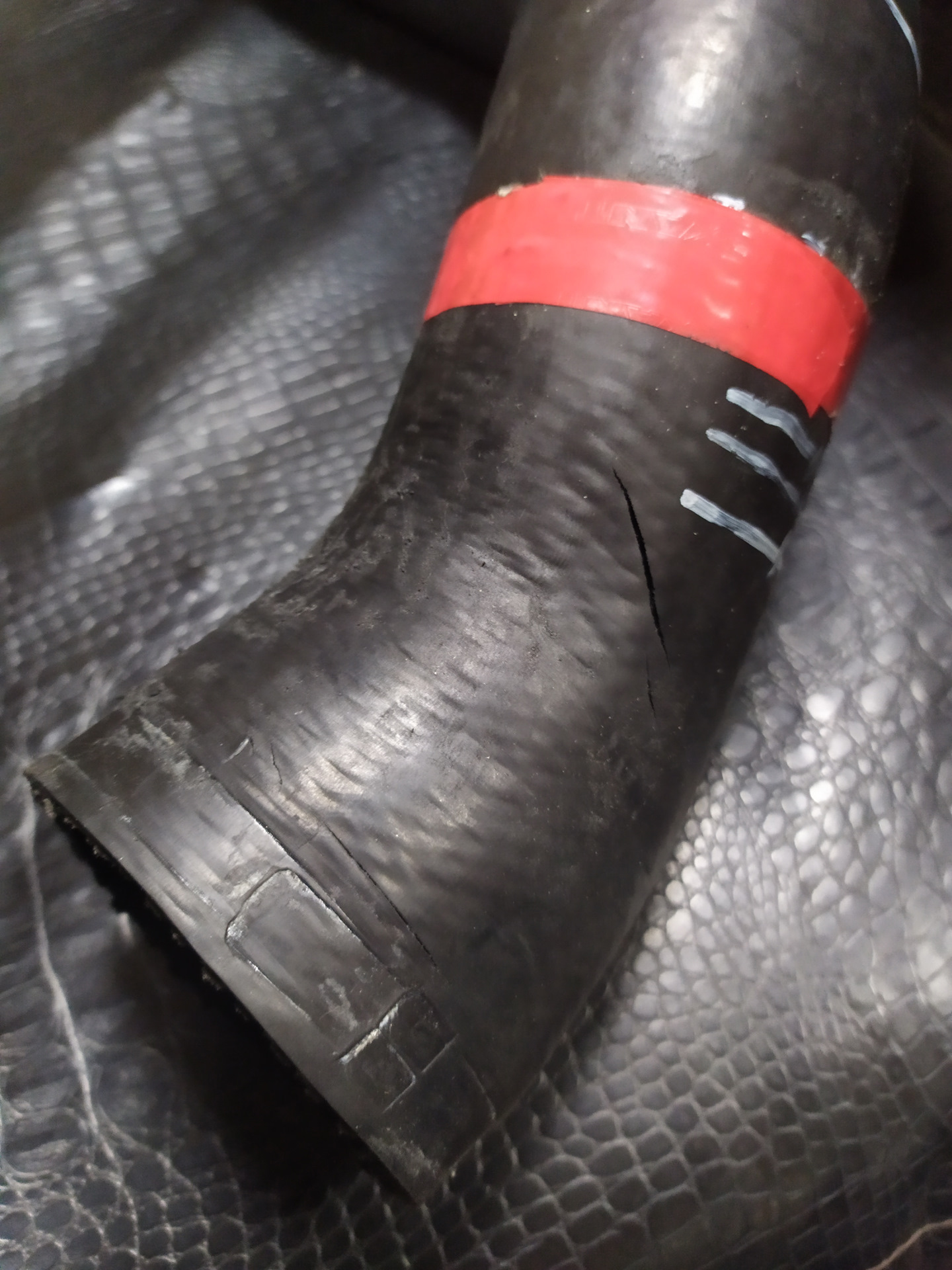 На прошлой неделе загорелся чек. Машина, по ощущениям, как ехала, так и едет, никаких видимых изменений не обнаружил. У знакомого электрика подключили Лаунч, ругался на клапан EGR (номер ошибки не помню), ошибка сохранённая (не актуальная). Почистили память неисправностей, чек погас. Пару дней поездил, опять загорелся. Выбрал время, полез смотреть мотор. На левом патрубке интеркулера (от интеркулера до воздушной заслонки) заметил маленькую трещину, которая на высоких оборотах раздувается до 2-3 см. В качестве временной меры замотал патрубок армированным скотчем, сверху изолентой. Раздувает, но воздух не выходит. Чек погас. Полез искать новый патрубок и тут облом. Только оригинал, ждать около месяца, и стоит от 12000 до 15000 рублей. К слову, клапан EGR можно купить за 17000. Честно, тихо охреневаю от ценовой политики MMC. Аналогов других производителей не нашёл. На разборках тоже глухо.