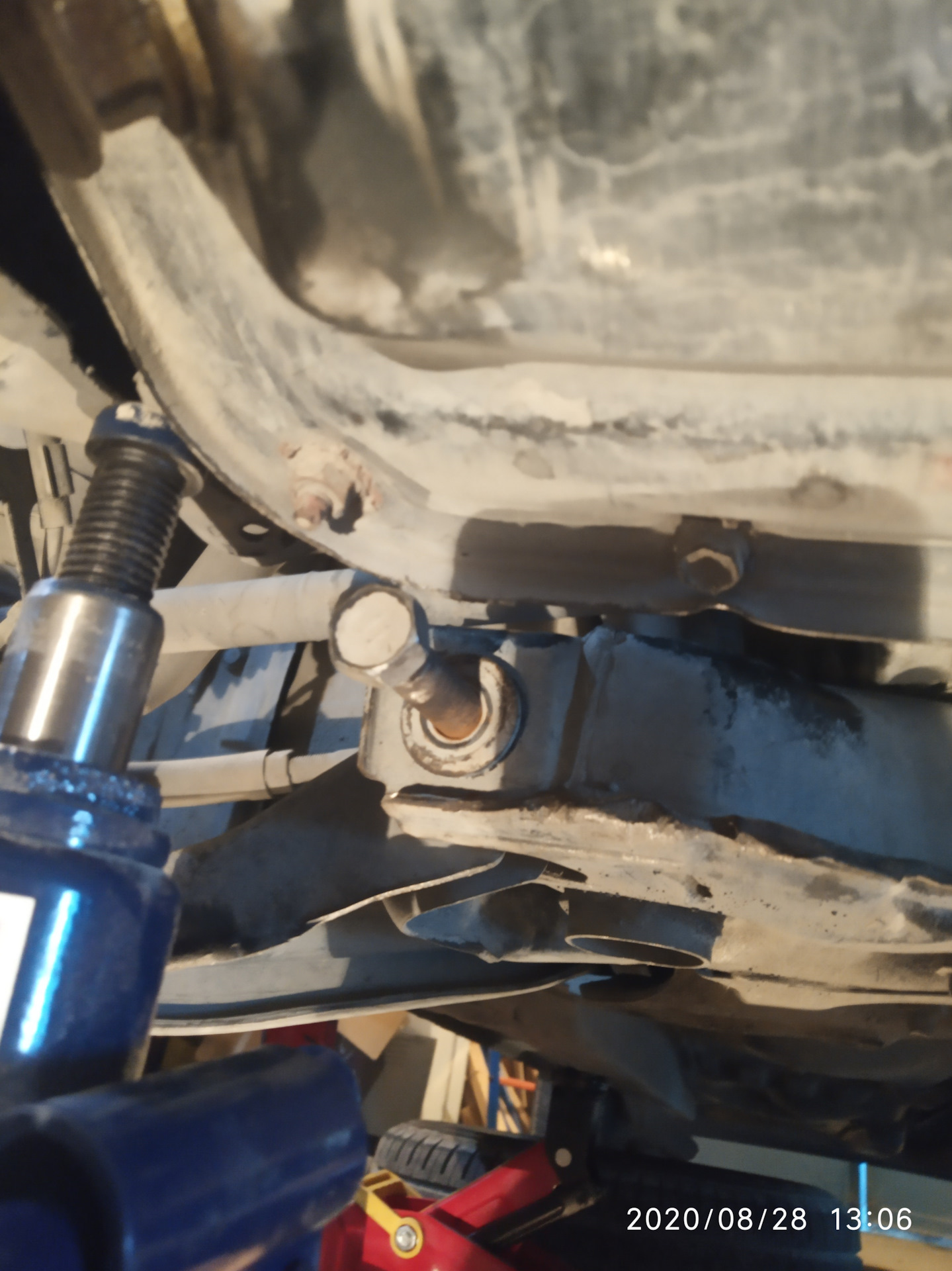 Открутить левый рычаг не так просто. Болт упирается в дно двигателя. Делается просто. домкратим двигатель за прилив. там то нужно 5 мм. Только не в поддон-слишком мягкий, тонкий он)))