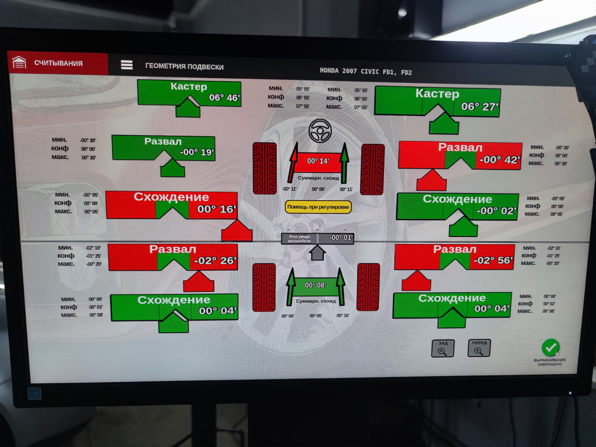 Развальщик бил в лоб себя и говорил при таком схождении жрать будет еще сильнее на 99.9 процентов, хотя б**** почему на фото развал в минусе в красной зон а сход стал в зеленую зону, теоретически жор должен уйти и по твоей теории тоже, а вот по теории двух развальщиков мы д******* и нужно сход ставить в 0.20 и выравнивать развал, убирать домик… где блин правда?